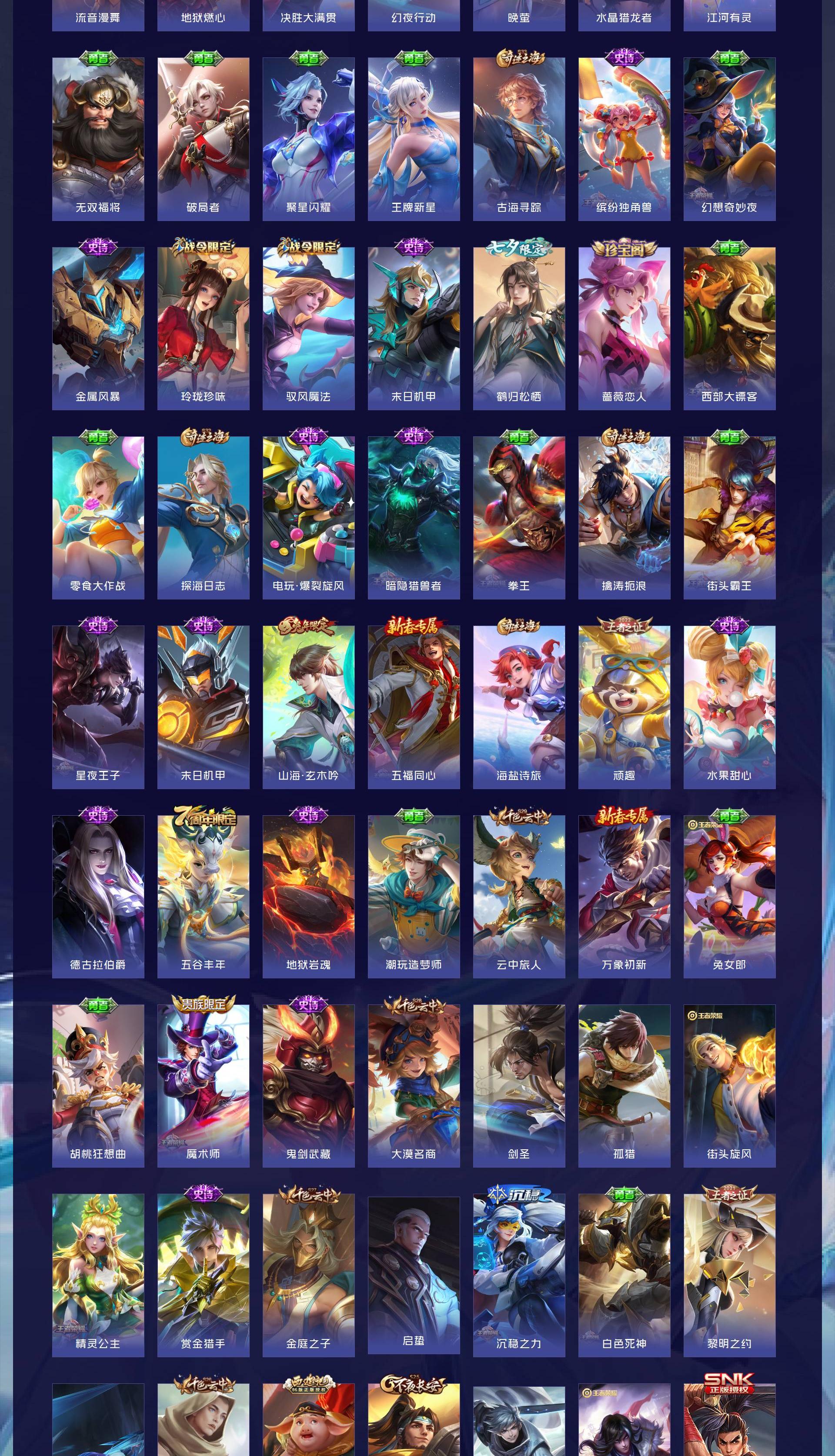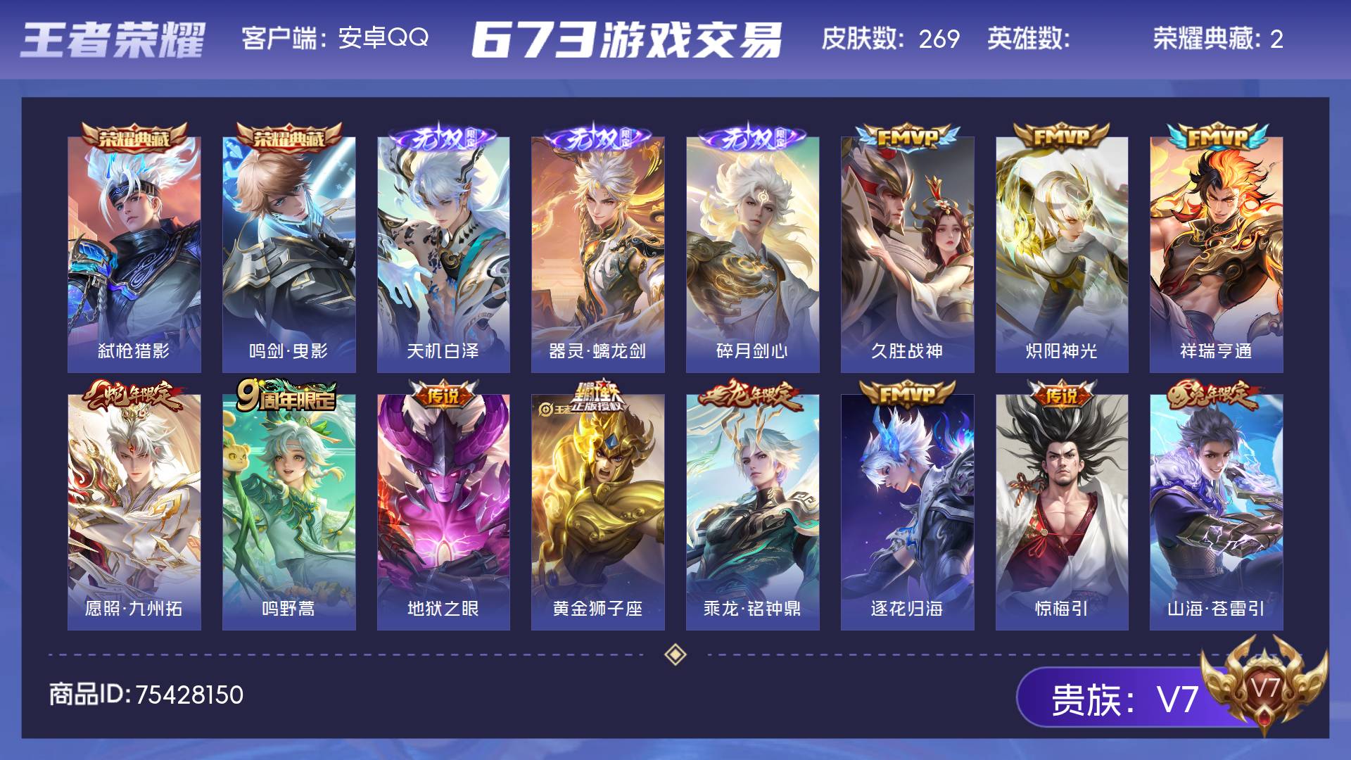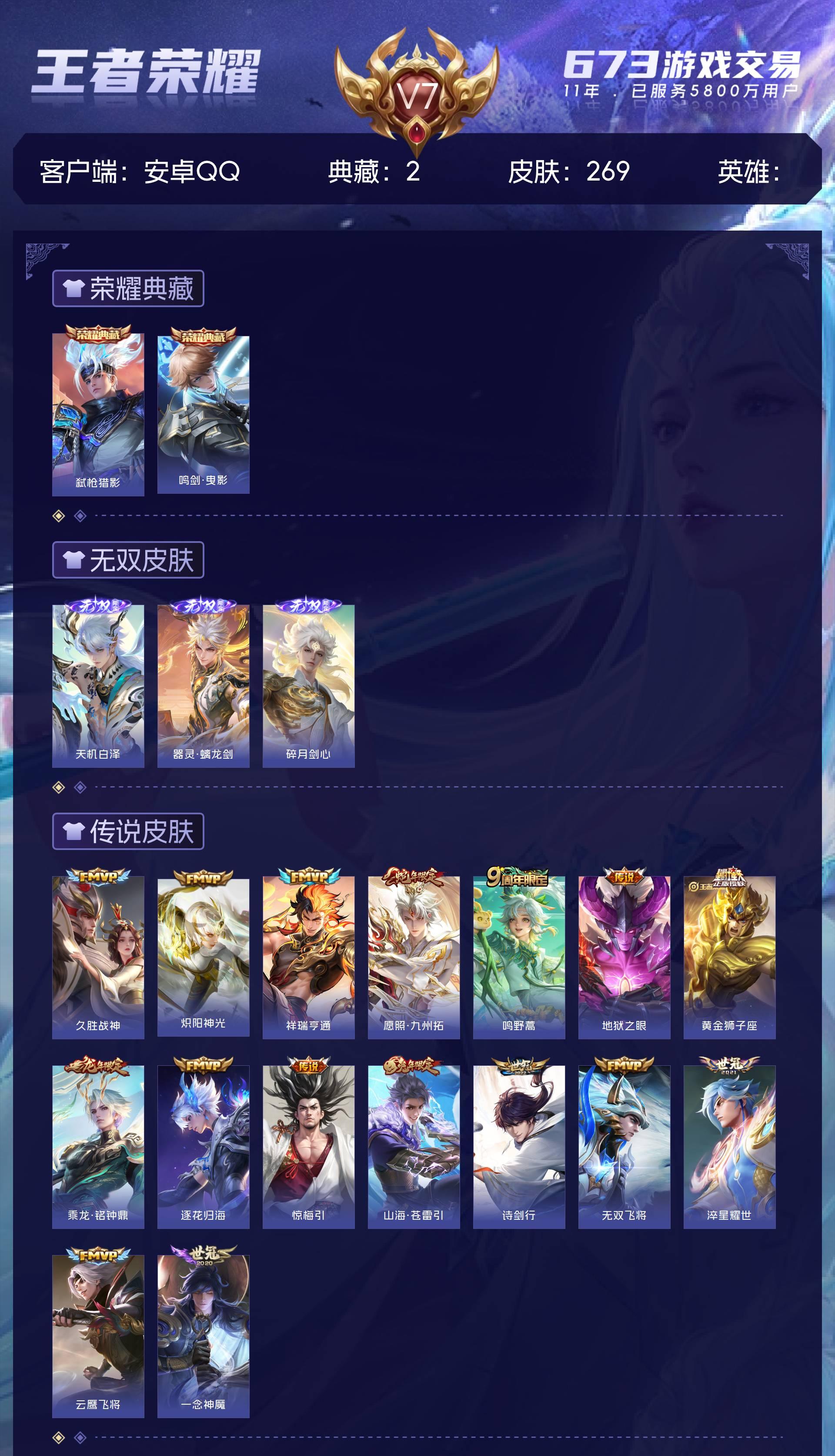 V7 皮肤269 绝世王者 荣耀典藏2 无双皮肤3 传说17 其他皮肤253