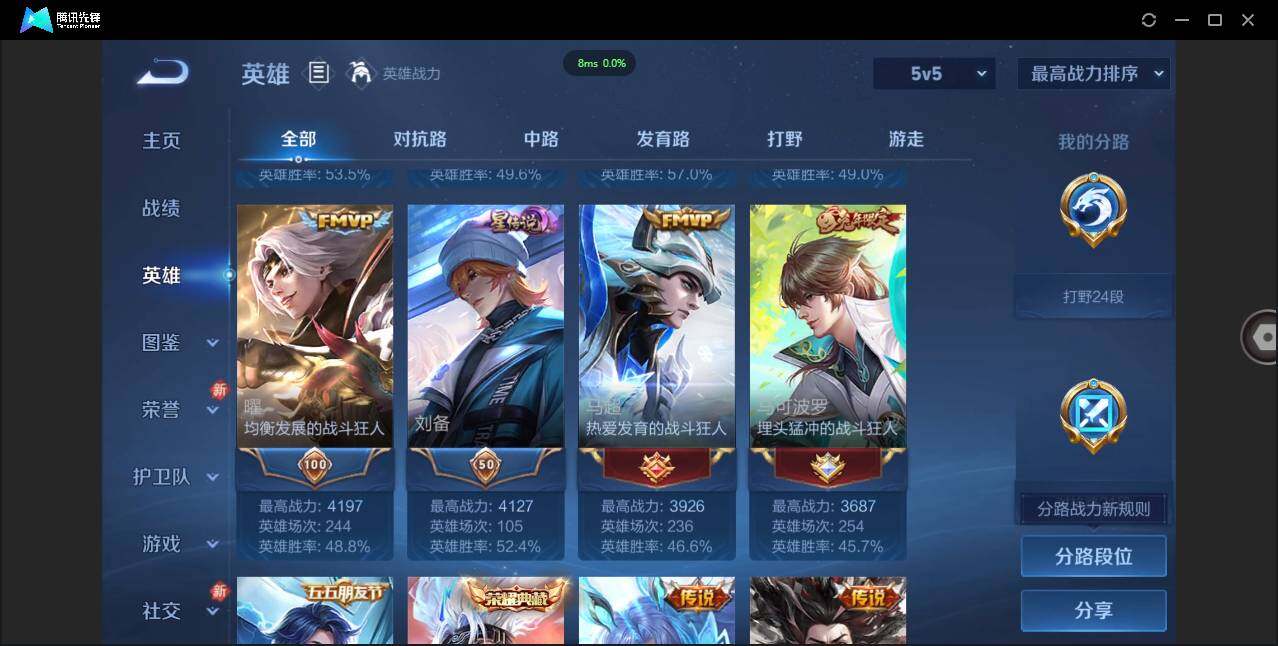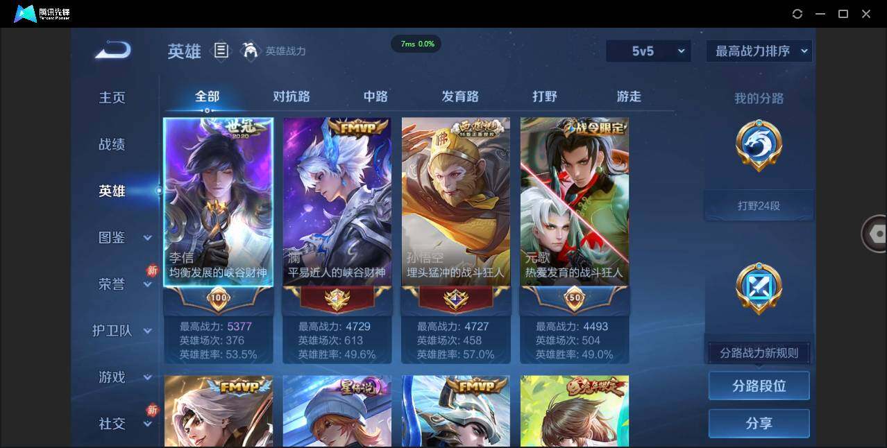 【W5200】6.1k场次极品打野号-打野24段(热门皮肤)弑枪猎影.惊梅引.