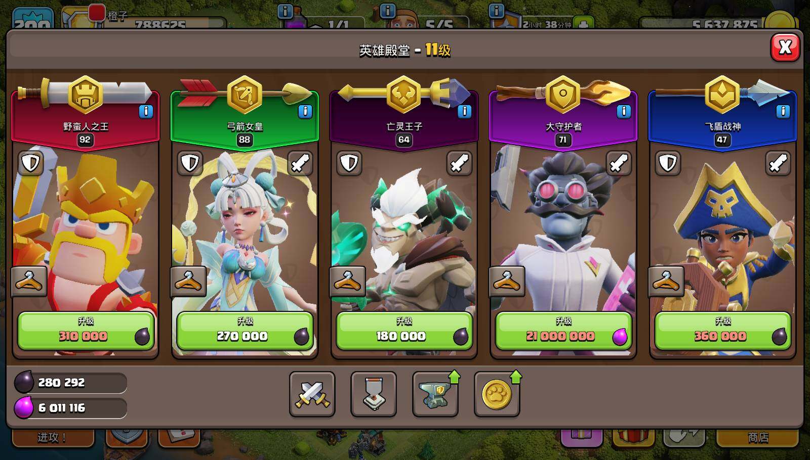 等级200/16王皮/9场景/5农/英雄等级92-88-71-64