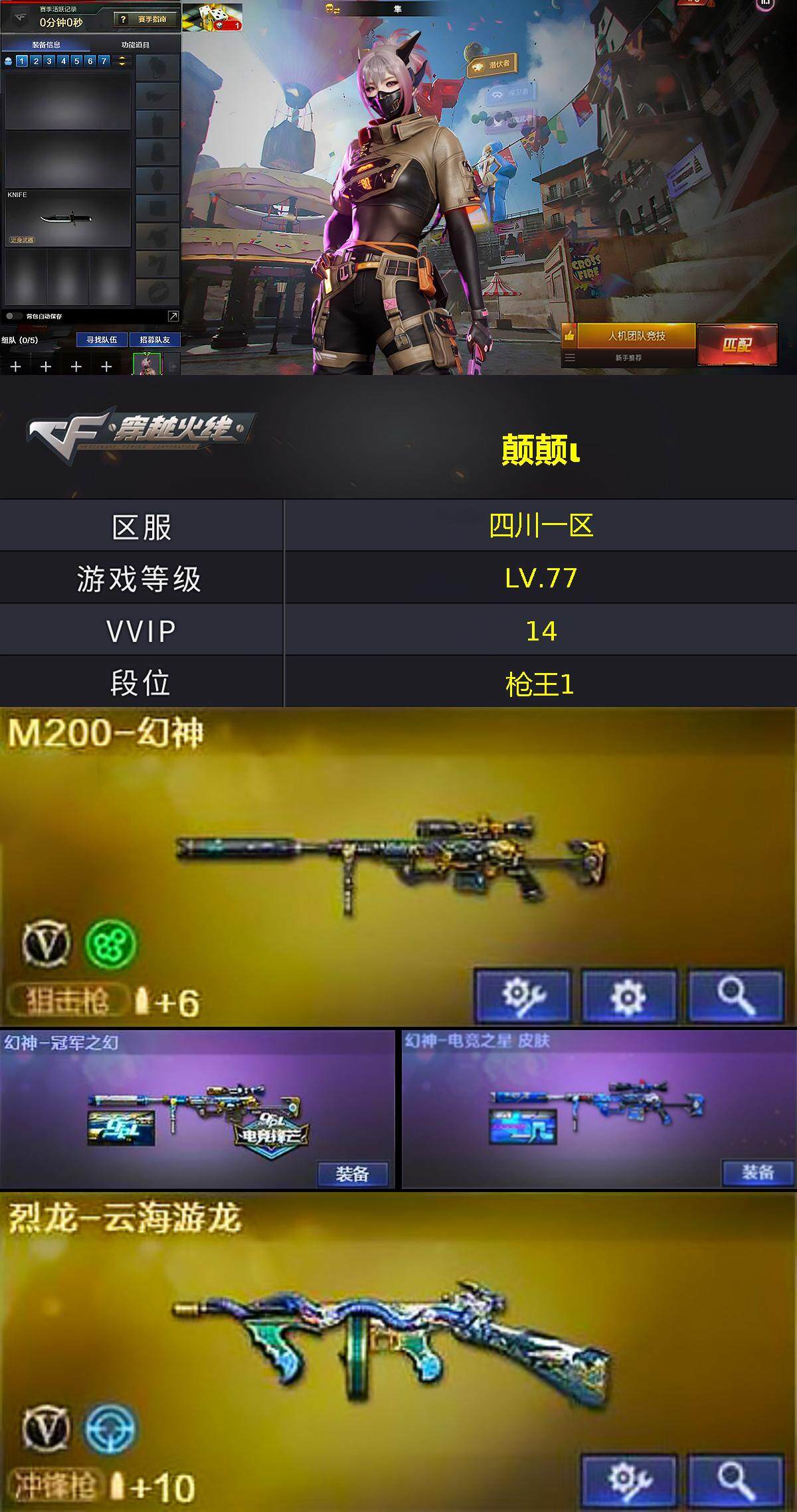 四川一区-13V-0王者-0炫金【热门武器】:M4A1-青龙,M200-幻神