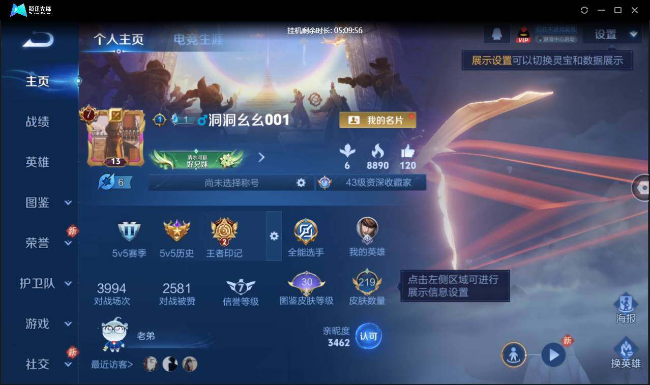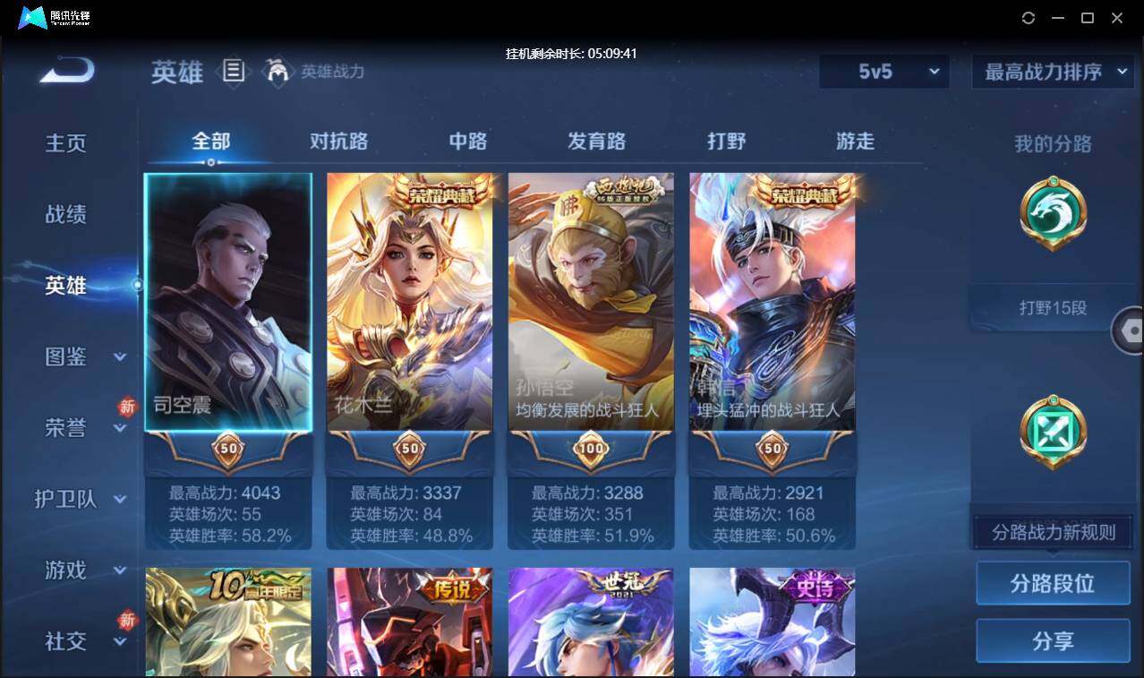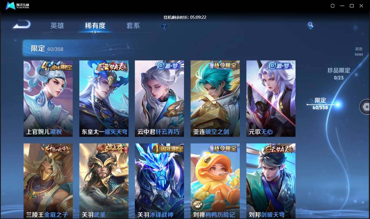 可二次-贵7-126英雄-219皮肤-2典藏-11传说-60限定-2按键-贵族积分33026
