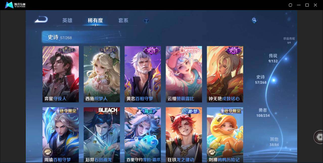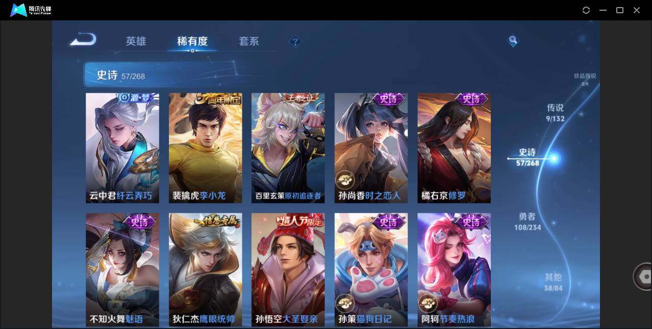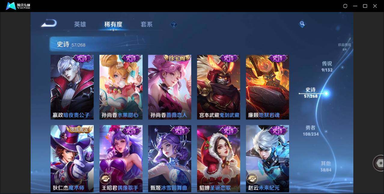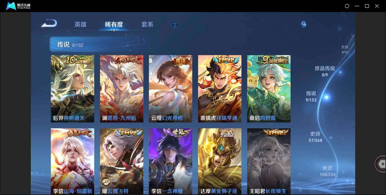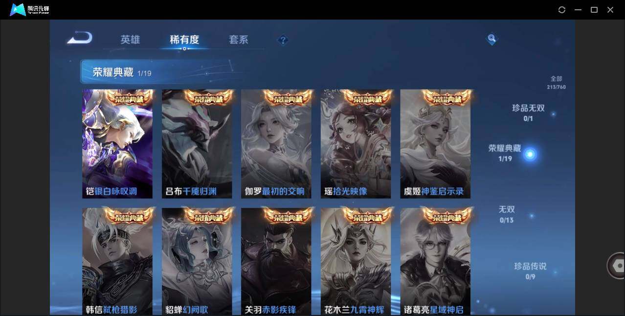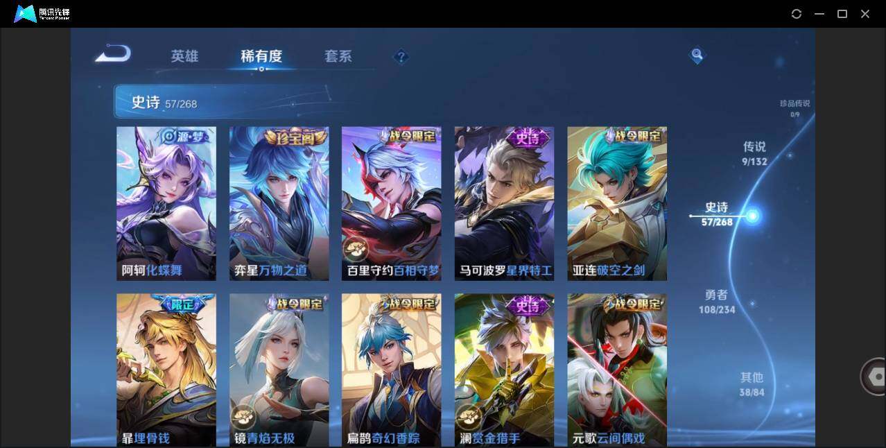 无二次-贵7-128英雄-213皮肤-1典藏-9传说-11按键-4800星币