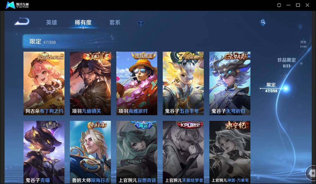 有二次-贵6-127英雄-170皮肤-10传说-1星元-47限定-5按键-灵宝-9印记-1.8万贵族积分