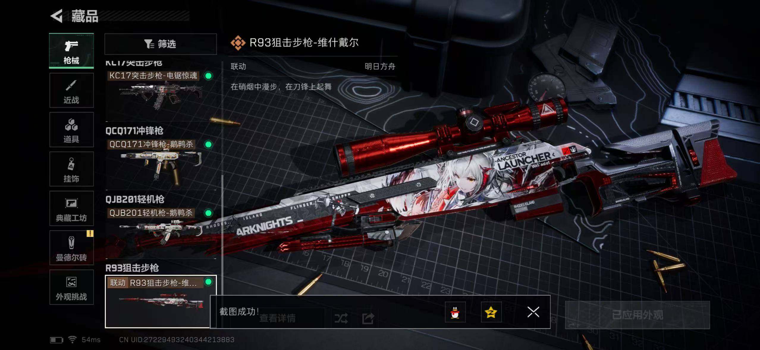 【传说外观】:ASh-12战斗步枪-鹅鸭杀,SG552突击步枪-运动员,SCAR-H战斗步枪-启航,KC17突击步枪-电锯惊魂,QCQ171冲锋枪-鹅鸭杀,QJB201轻机枪-鹅鸭杀,R93狙击步枪-维什戴尔