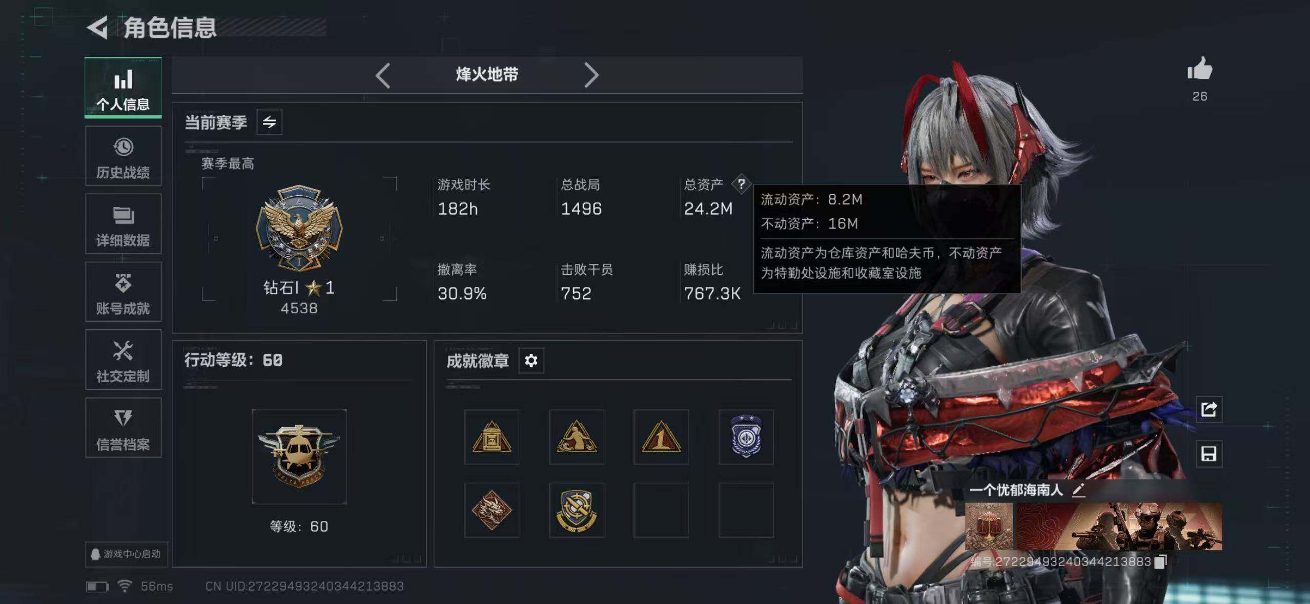 24m总资产-383k哈伏币-60烽火等级-钻石-24战场等级-列兵