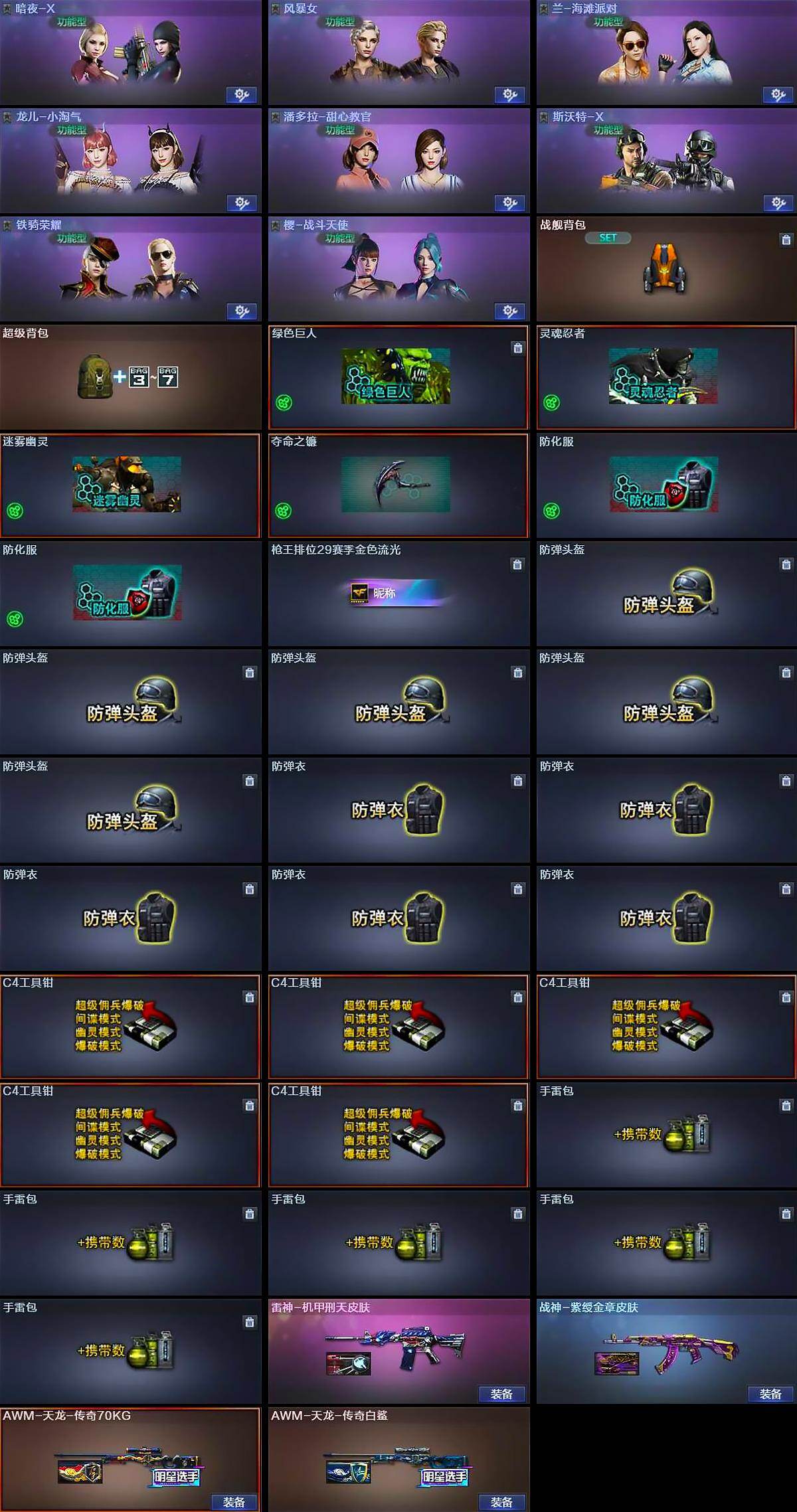 【皮肤】:雷神-机甲刑天皮肤,战神-紫绶金章皮肤,AWM-天龙-传奇70KG,AWM-天龙-传奇白鲨