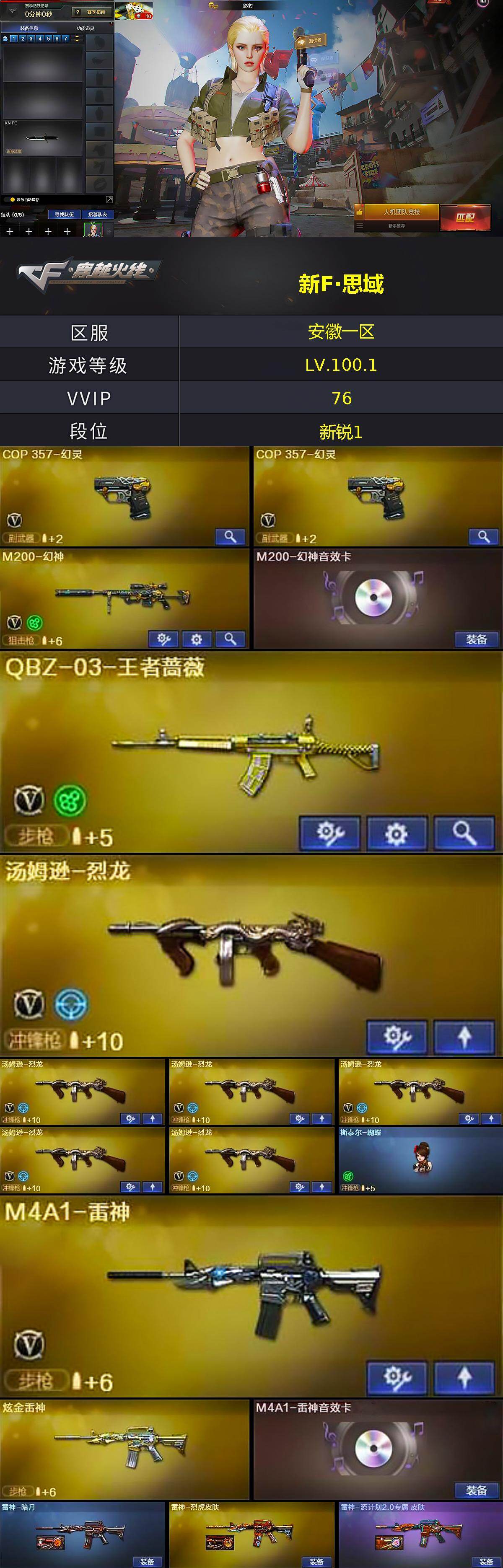 【热门武器】:M4A1-青龙,M200-幻神,荣耀世冠-火麒麟,M4A1-黑骑士*2,汤姆逊-烈龙*6,加特林-炼狱,斯泰尔-蝴蝶,雷神-小红,COP 357-幻灵*2,沙鹰-修罗*2,金刚伞