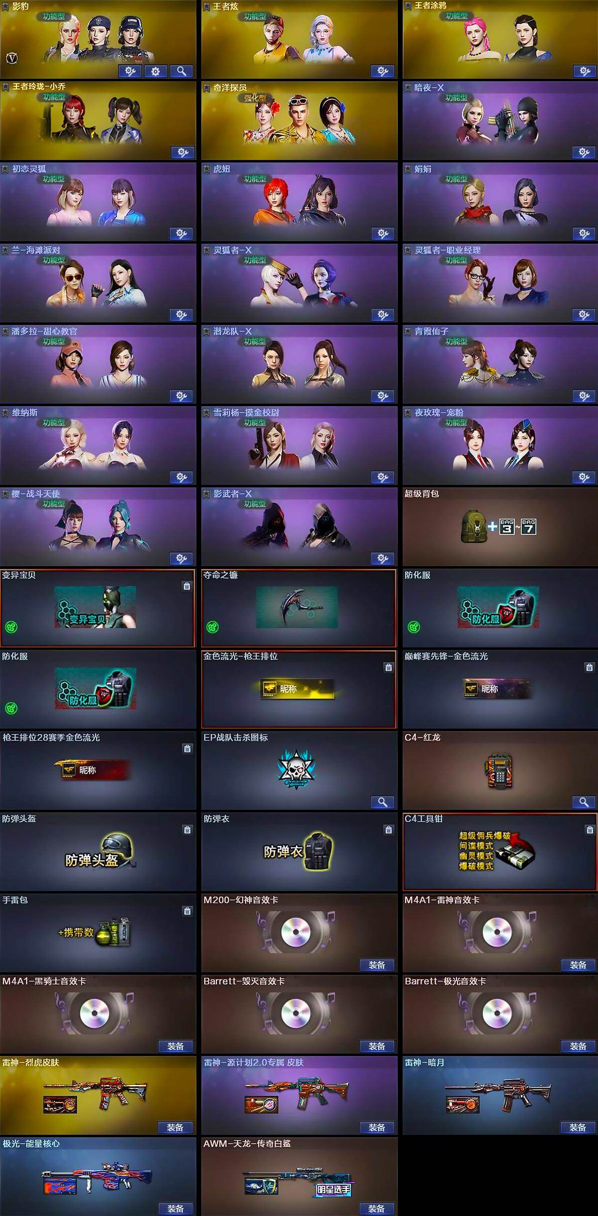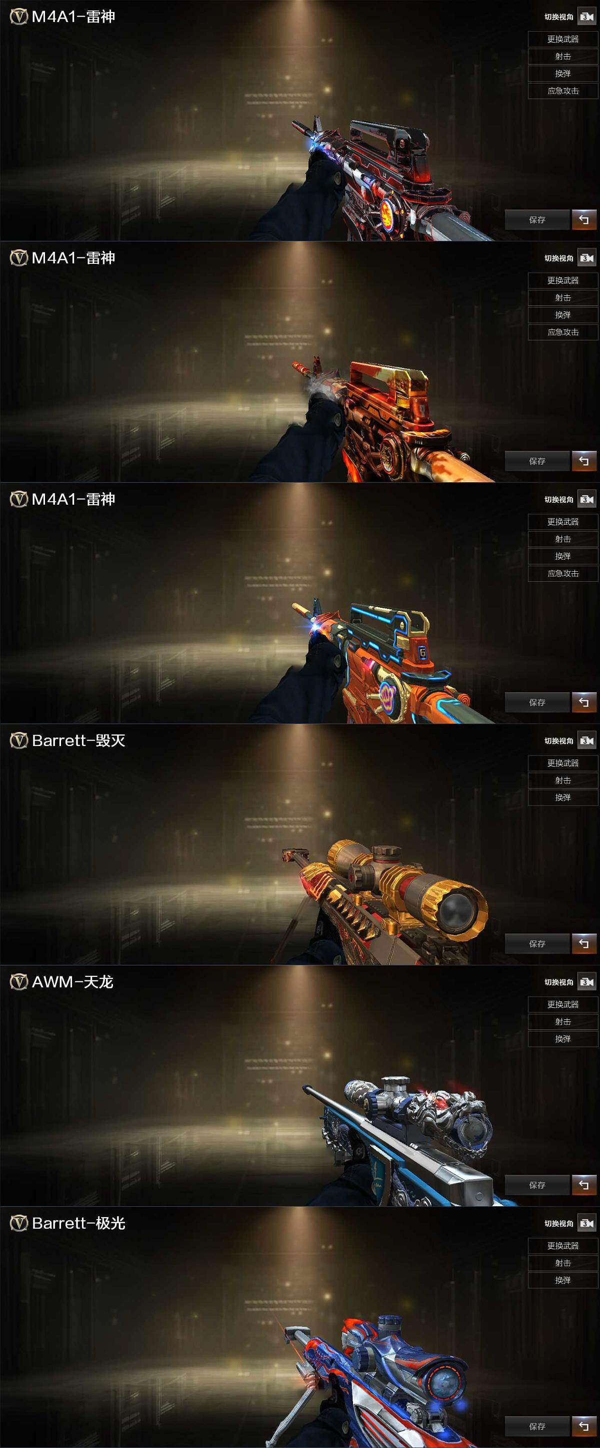 【音效卡】:M200-幻神音效卡,M4A1-雷神音效卡,M4A1-黑骑士音效卡,Barrett-毁灭音效卡,Barrett-极光音效卡