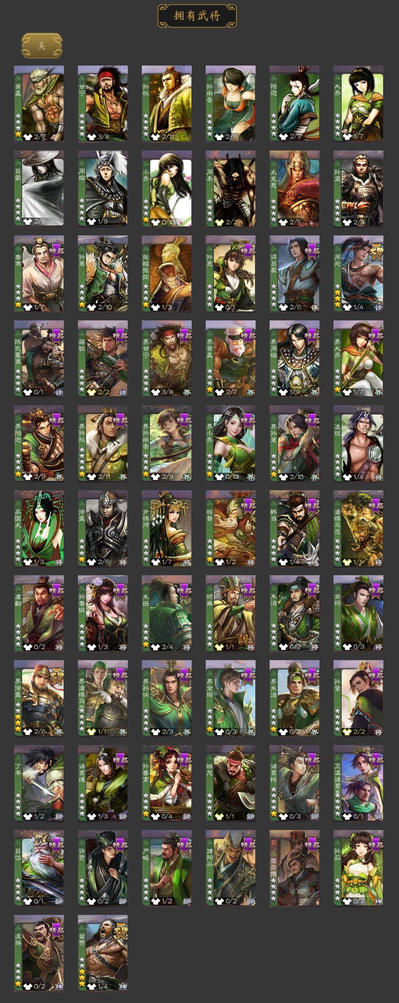 神吕布,神赵云,神甘宁,神孙策,神吕蒙,神周瑜,星周不疑,马钧,界钟会,界于禁,界曹真,曹纯,马云騄,谋马超,张星彩,花鬘,周处,留赞,界徐盛,左慈,麹义,祢衡,沮授,杜预,神甘宁-万