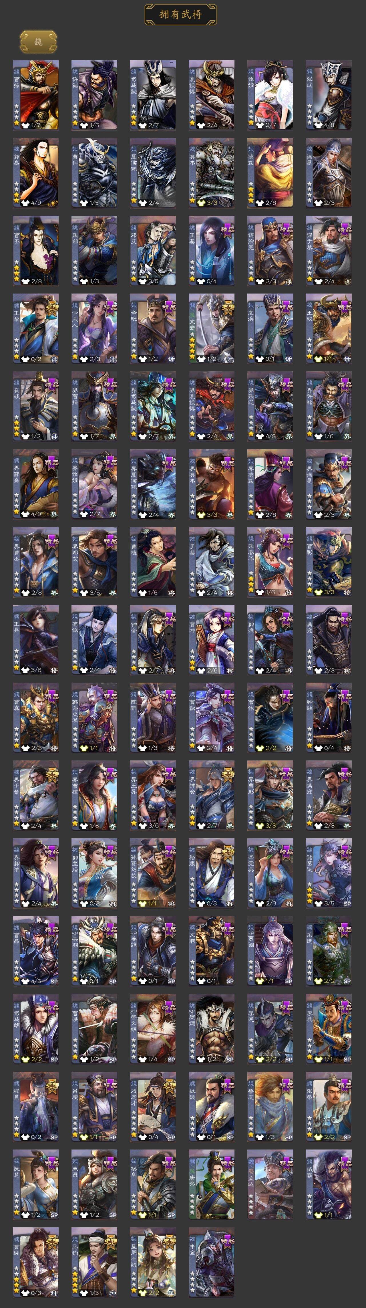 神曹操,神赵云,神张辽,神吕蒙,神周瑜,星周不疑,王粲,马钧,界钟会,界于禁,嵇康,程昱,曹纯,戏志才,牛金,臧霸,张春华,界司马懿,王双,于禁,李典,界夏侯渊,曹真,韩浩史涣,孙资