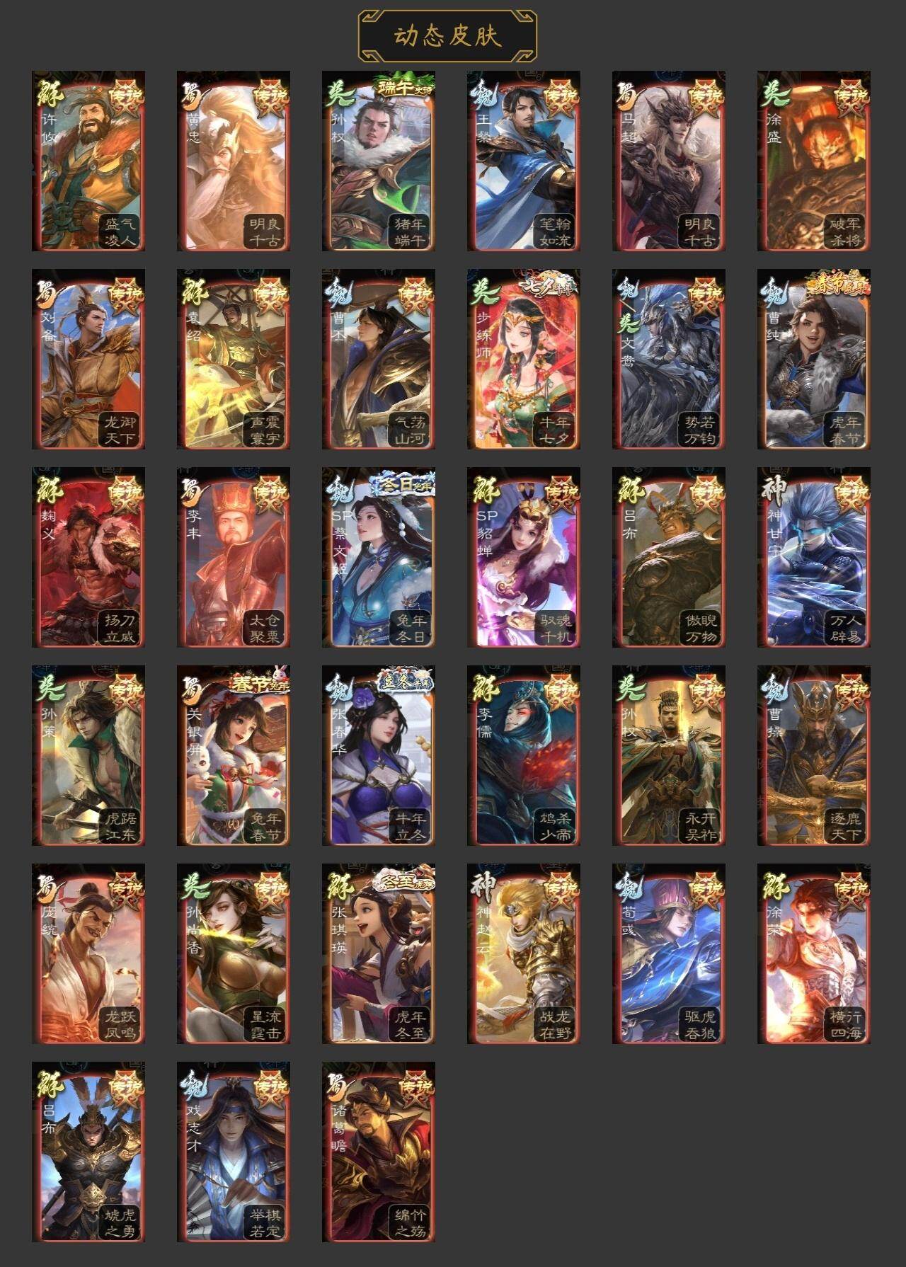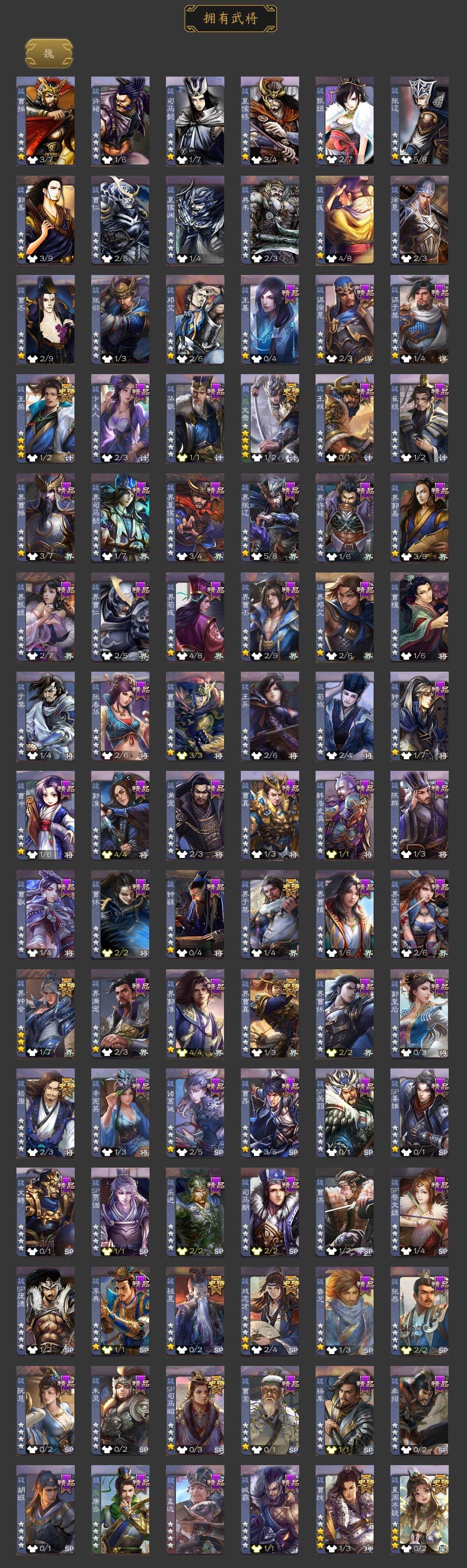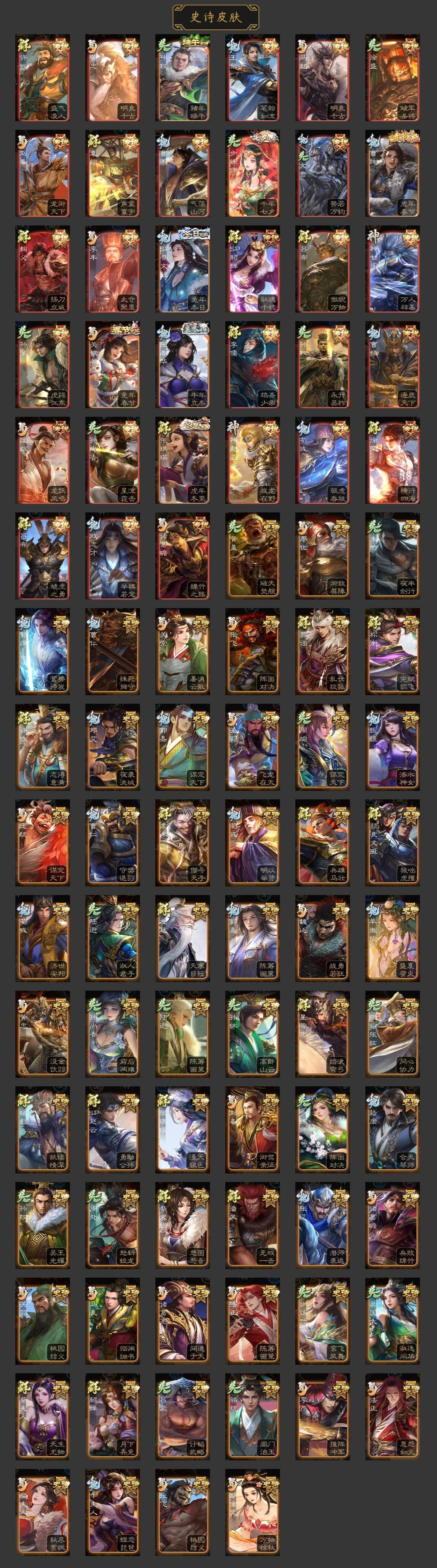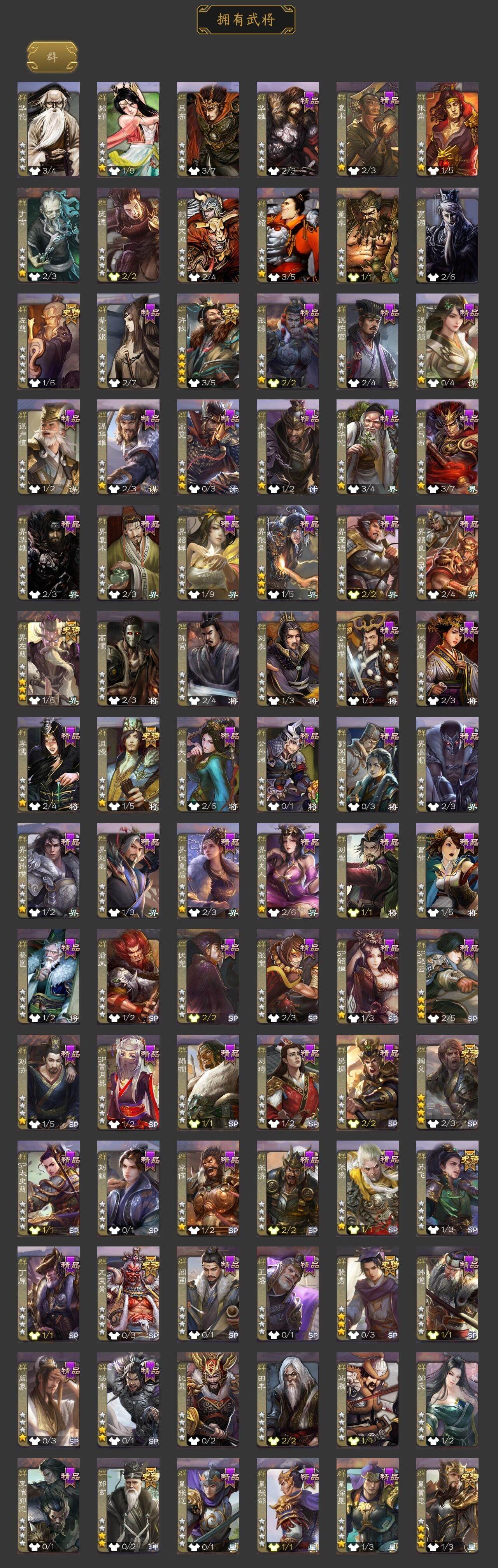 神赵云,神甘宁,神关羽,神吕蒙,神周瑜,神诸葛亮,SP司马昭,星周不疑,王粲,文鸯,界钟会,界于禁,界曹真,嵇康,曹纯,戏志才,谋诸葛亮,谋刘备,马云騄,谋赵云,谋马超,诸葛瞻,
