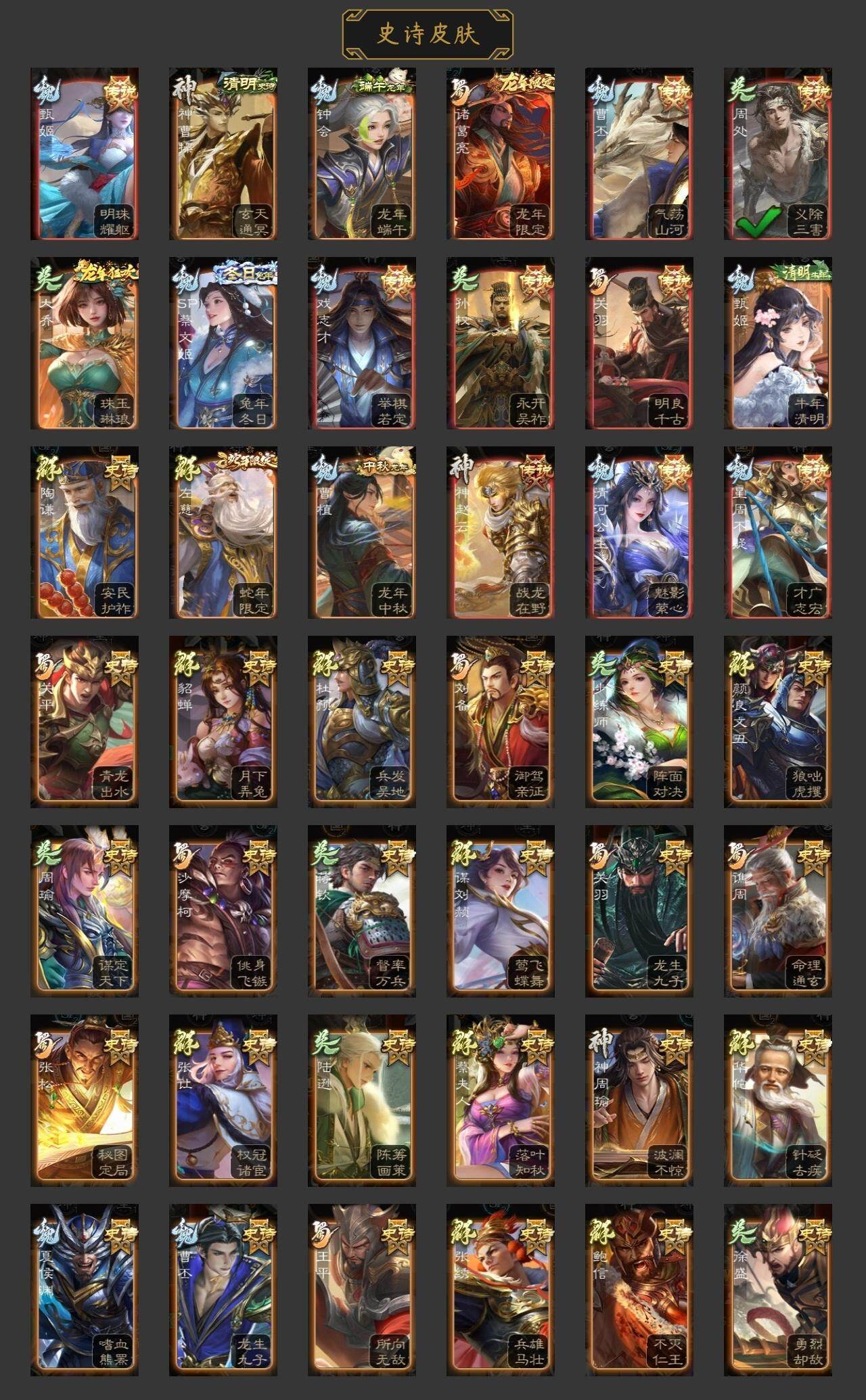 官阶:骠骑将军;VIP等级:VIP9;史诗武将数量:28;动态皮肤数量:26;
