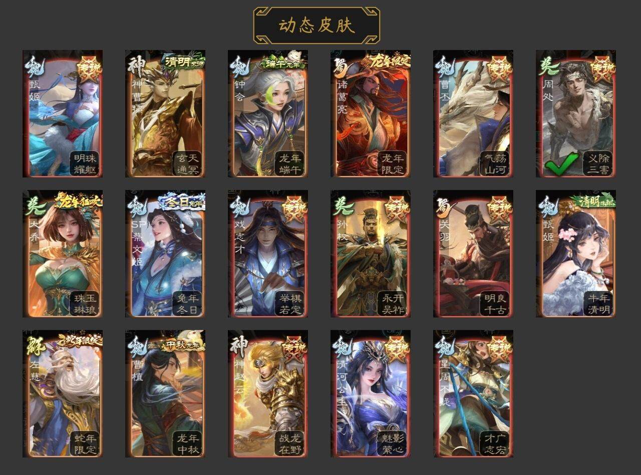 神赵云,神刘备,神张辽,神关羽,神吕蒙,神周瑜,星周不疑,杨修,界钟会,曹纯,戏志才,清河公主,王平,沙摩柯,谯周,花鬘,界徐盛,谋郭嘉,谋荀彧,裴秀,张让,星黄忠,审配,麹义,沮授