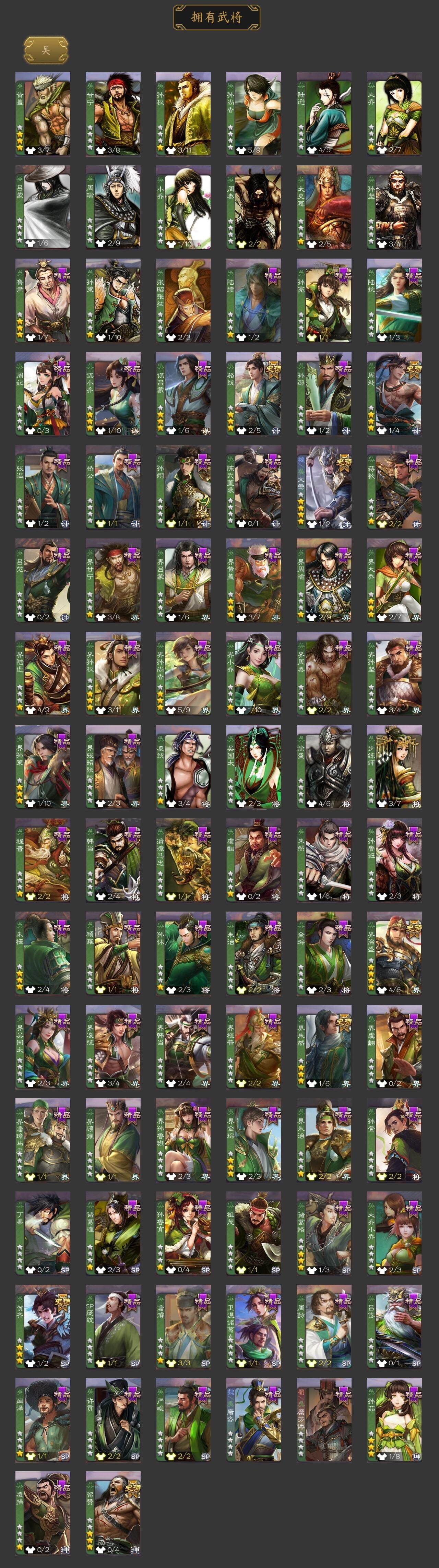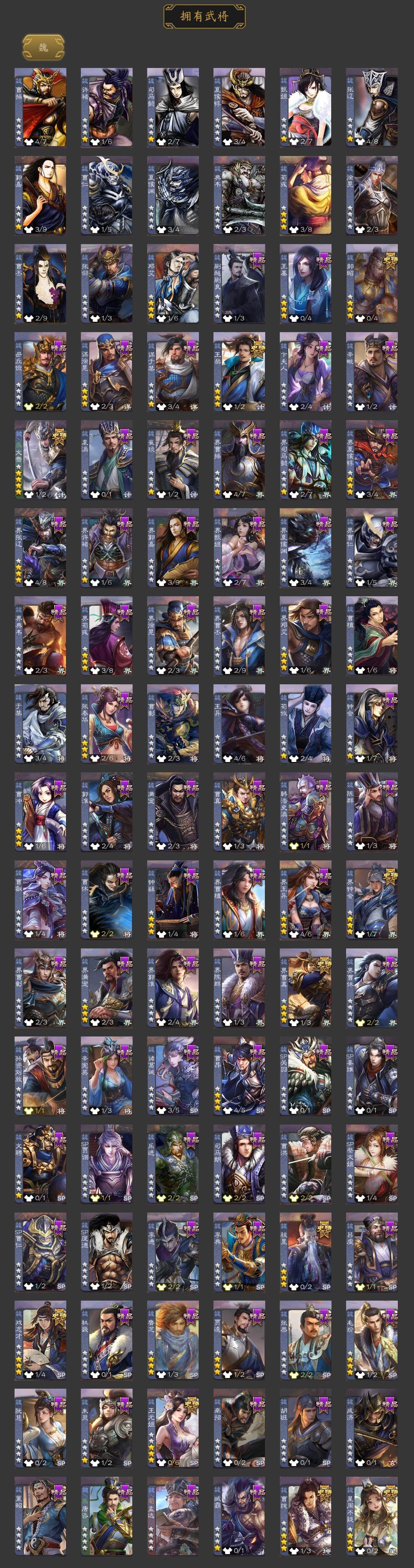 神吕布,神赵云,神陆逊,神张辽,神吕蒙,神周瑜,神诸葛亮,星周不疑,王粲,文鸯,王元姬,界钟会,界曹真,郝昭,曹纯,戏志才,谋诸葛亮,马云騄,谋赵云,谋马超,诸葛瞻,周群,张星彩,