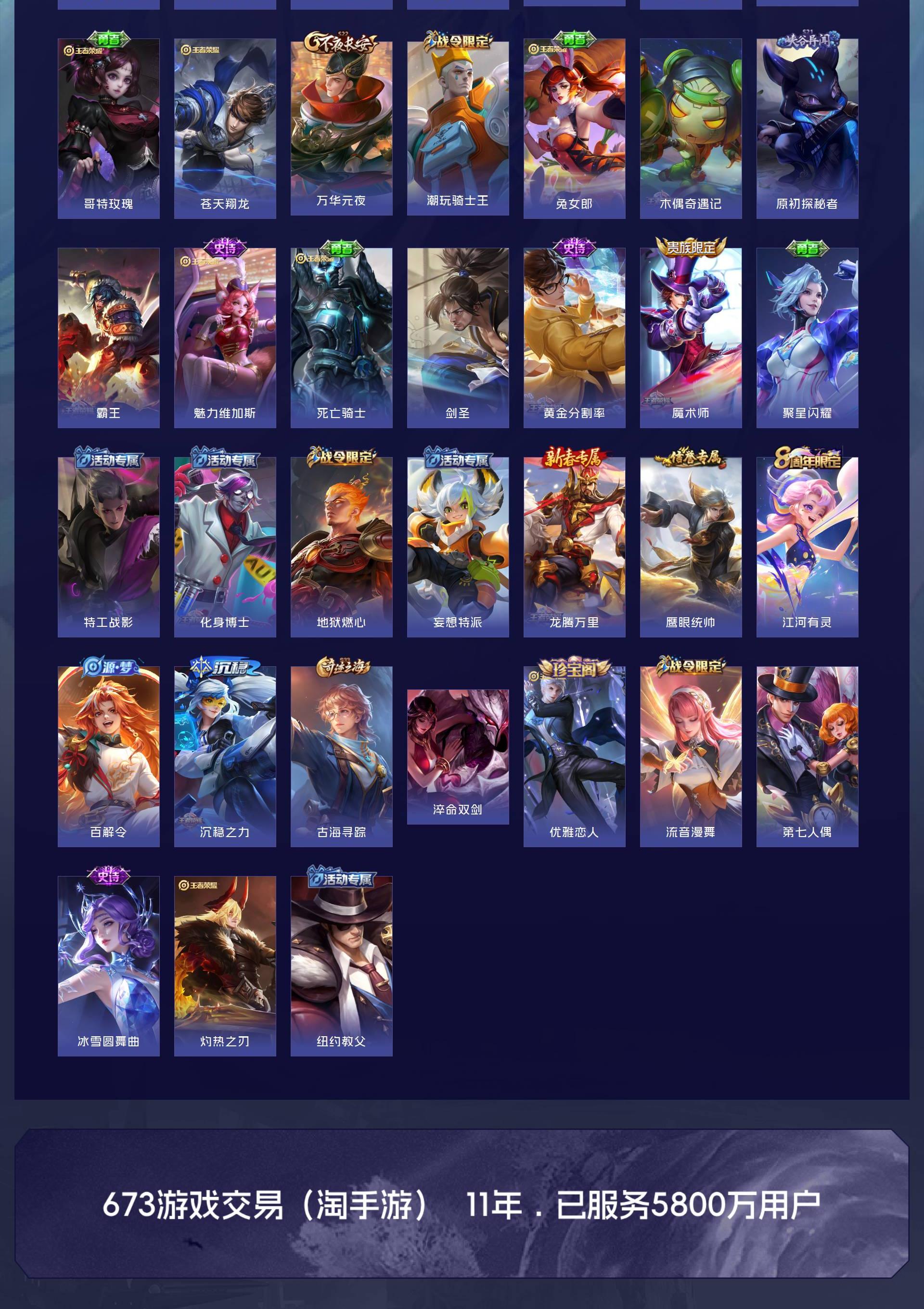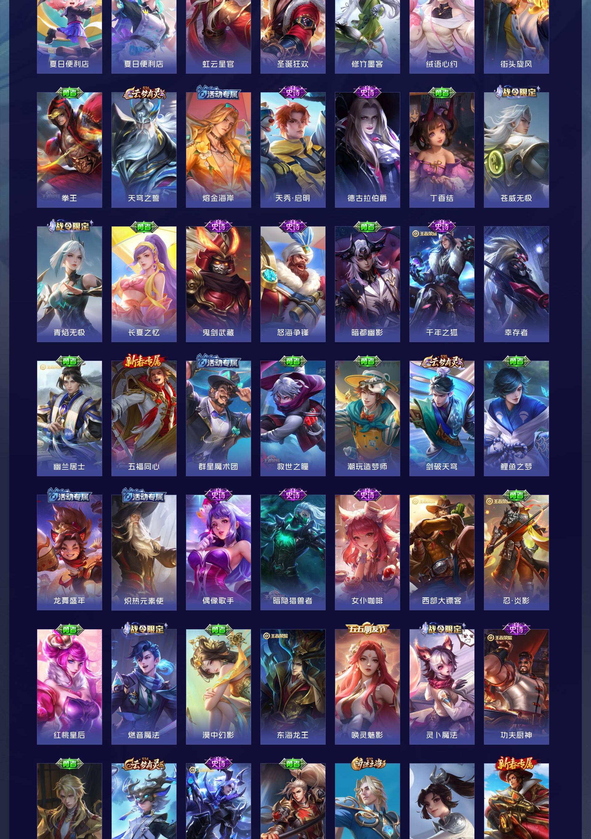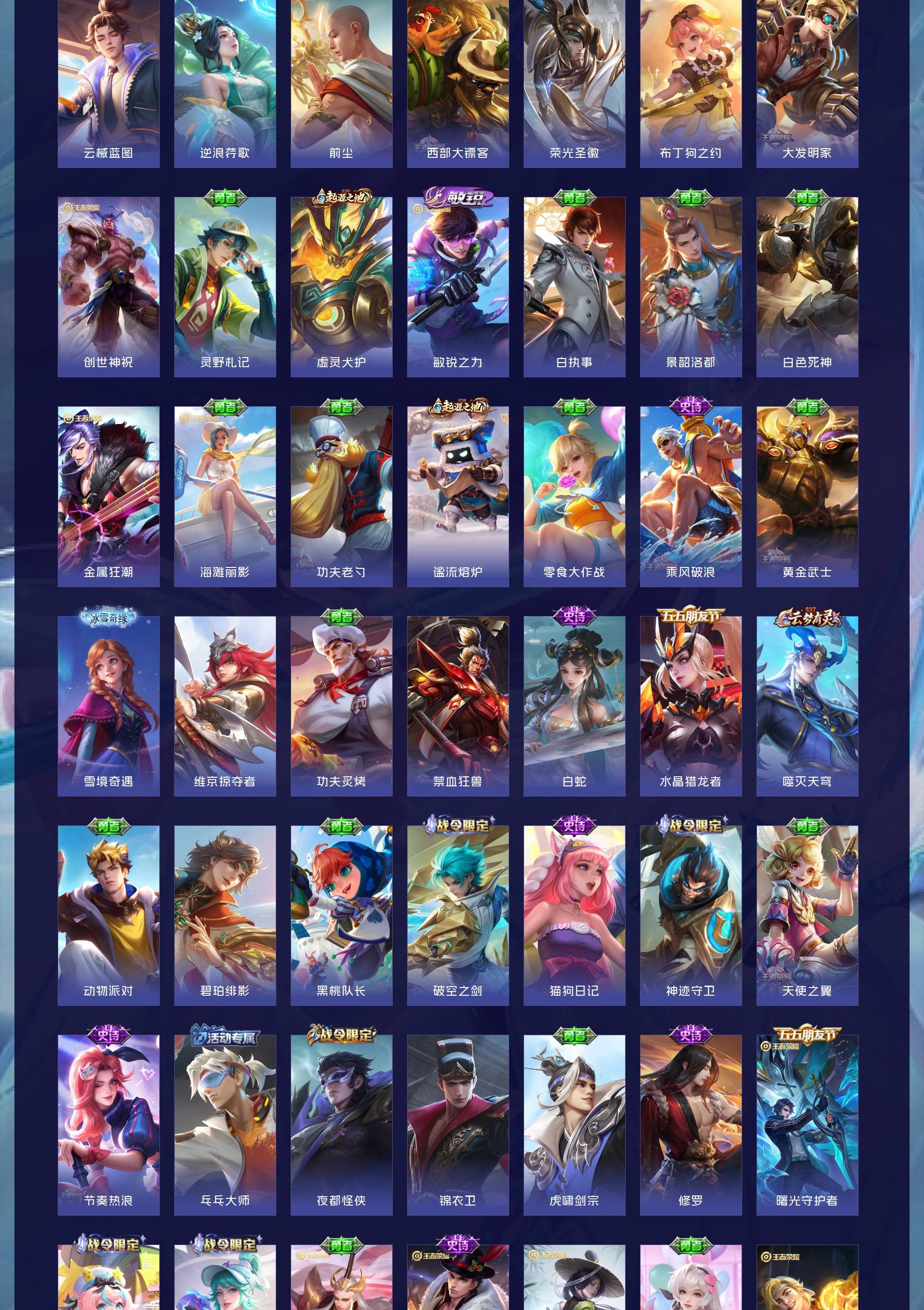 V7 皮肤182 英雄125 非凡王者 星传说1 传说10 其他皮肤178