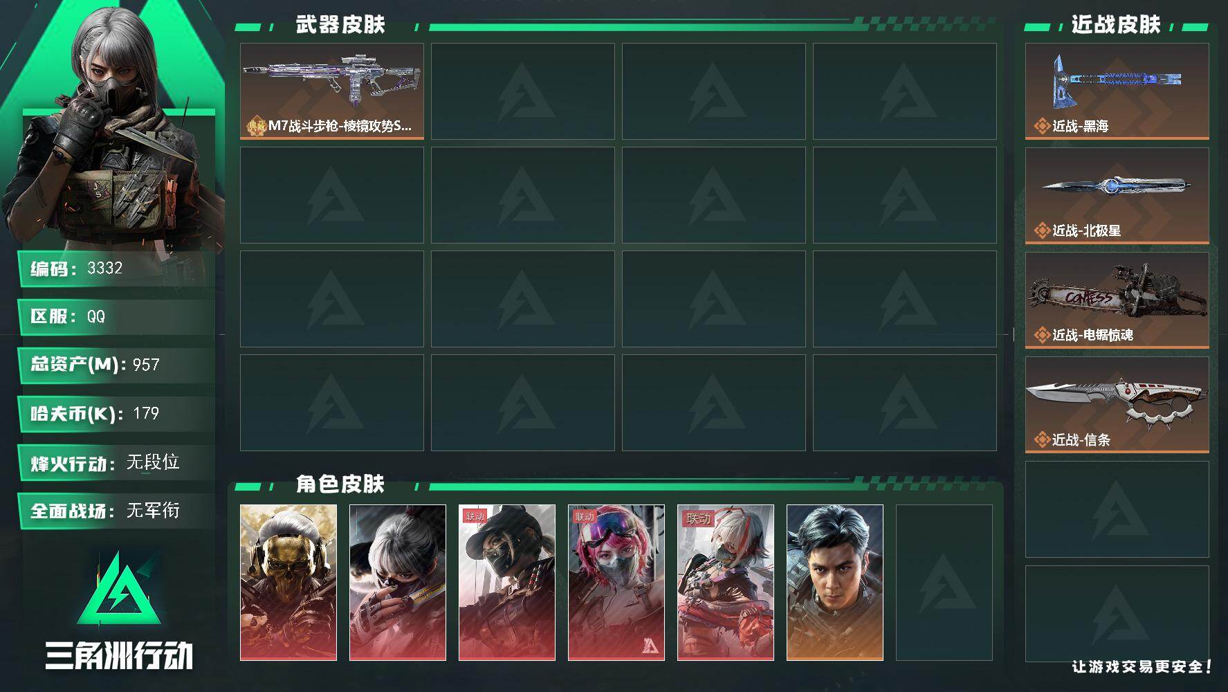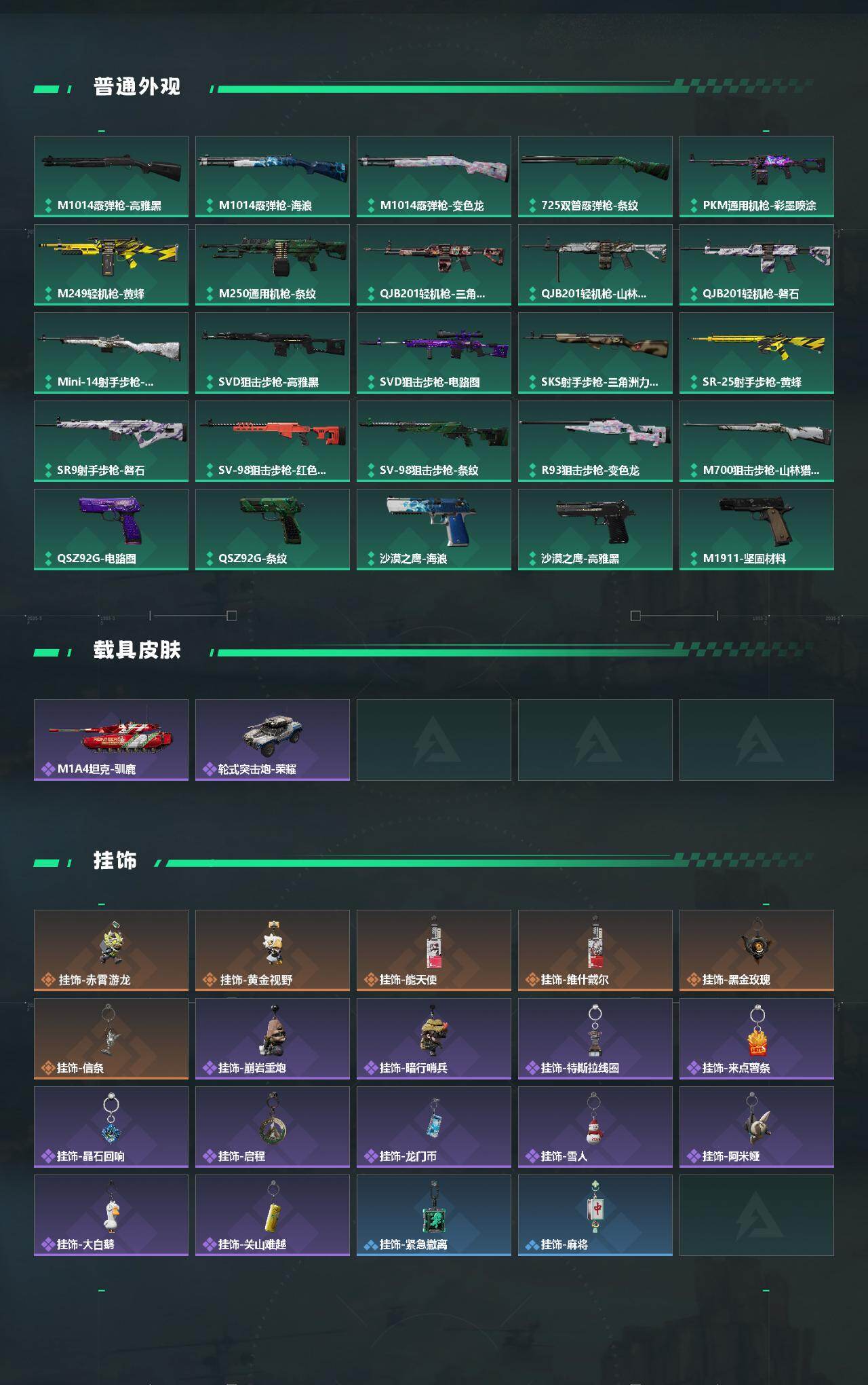 【SJZQH570】总资产(M):412M/哈夫币(K):59867K/哈夫币(K):59867K/传说枪皮数:30/全面战场等级:16_段位:列兵/烽火地带等级:60_段位:钻石/红狼-蚀金玫瑰/蛊-能天使午夜邮差/骇爪-维什戴尔/蜂医-送葬人·无题密令/深蓝-不破誓约/红狼-电锯惊魂/露娜-金牌射手/近战-北极星/近战-信条/近战-影锋/近战-怜悯/近战-赤枭/近战-龙牙/近战-黑鹰/SCAR-H战斗步枪-电玩高手/K416突击步枪-命运/AUG突击步枪-气象感应/腾龙突击步枪-气象感应/M