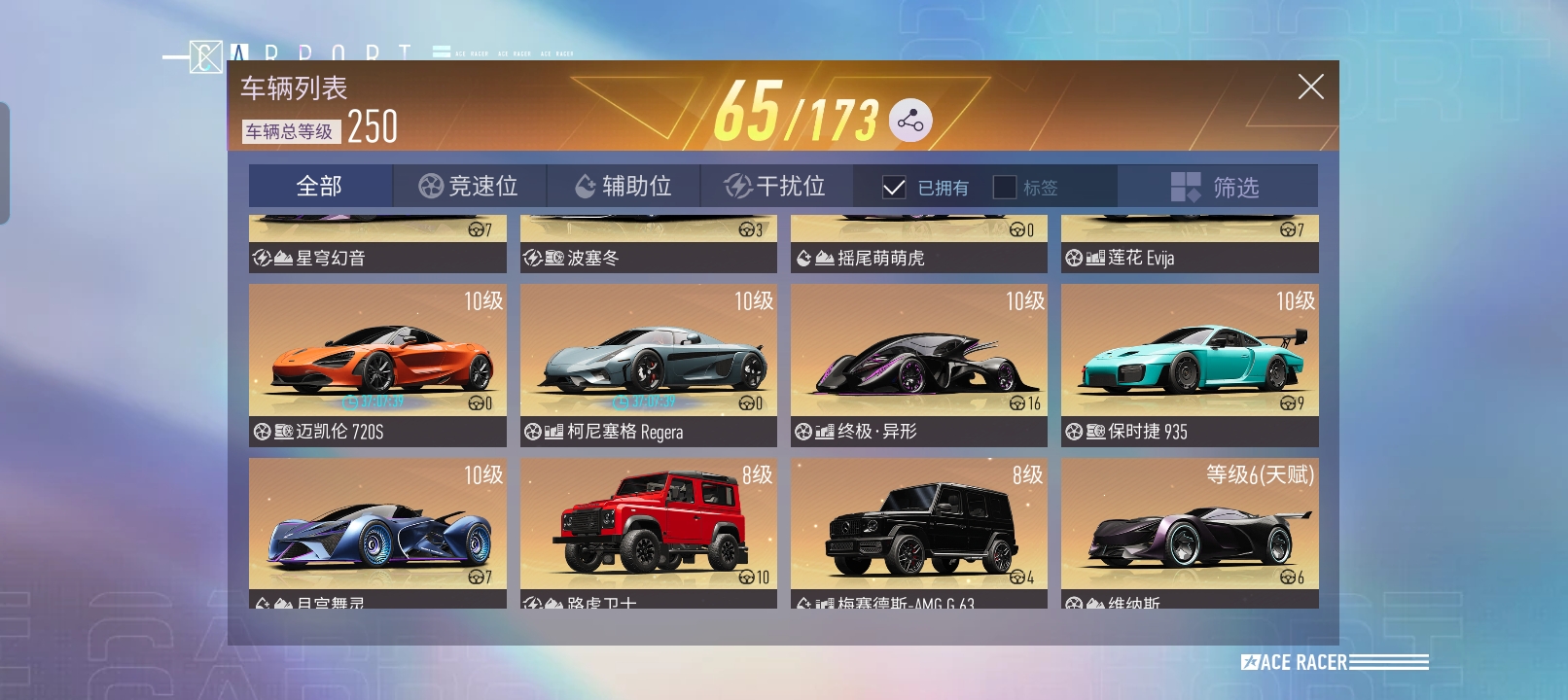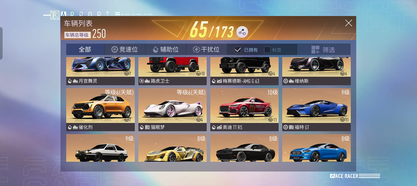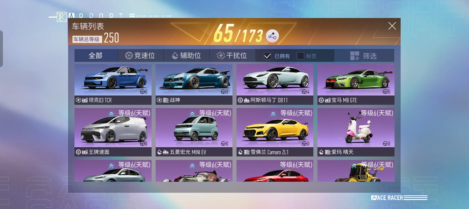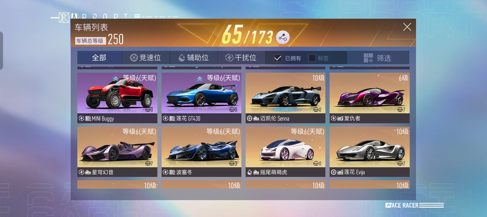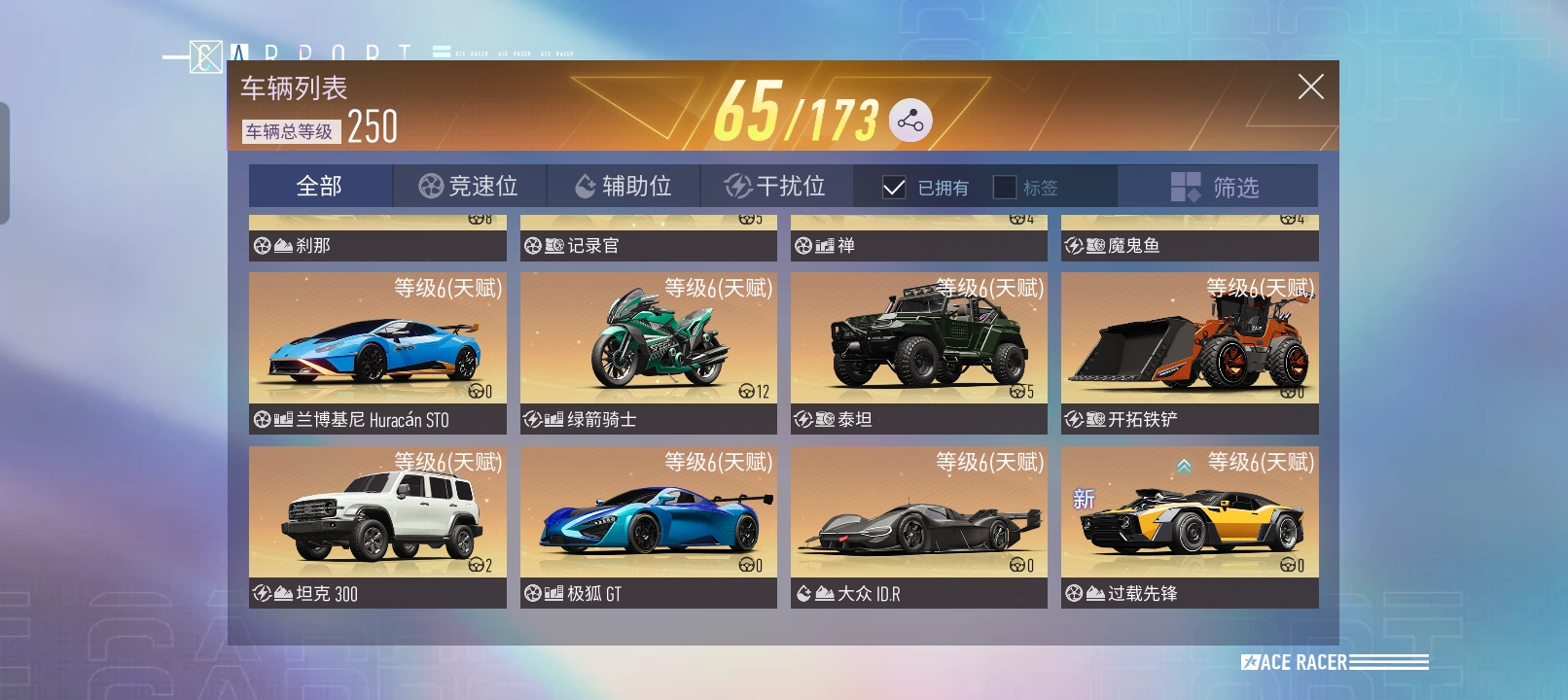 赛车挺多,有强势的车,有两个金车皮以及两个金车轮
