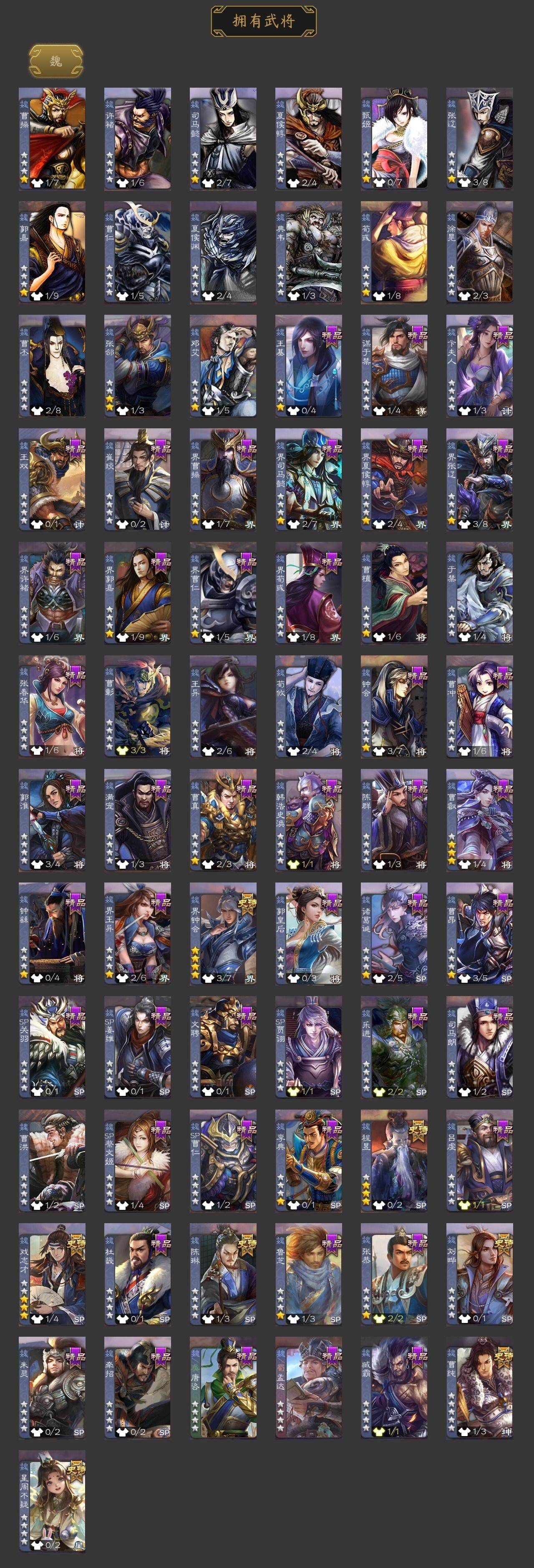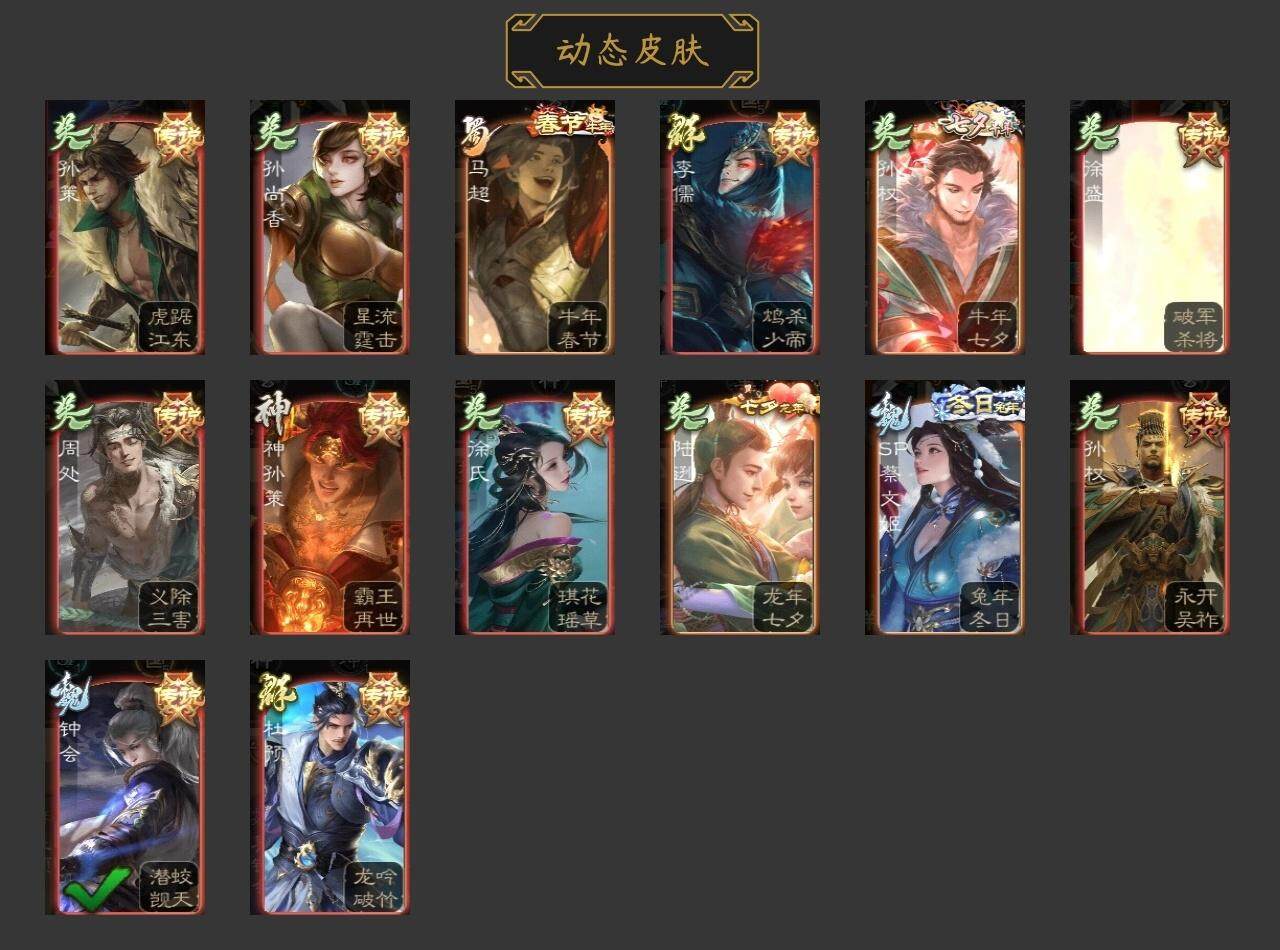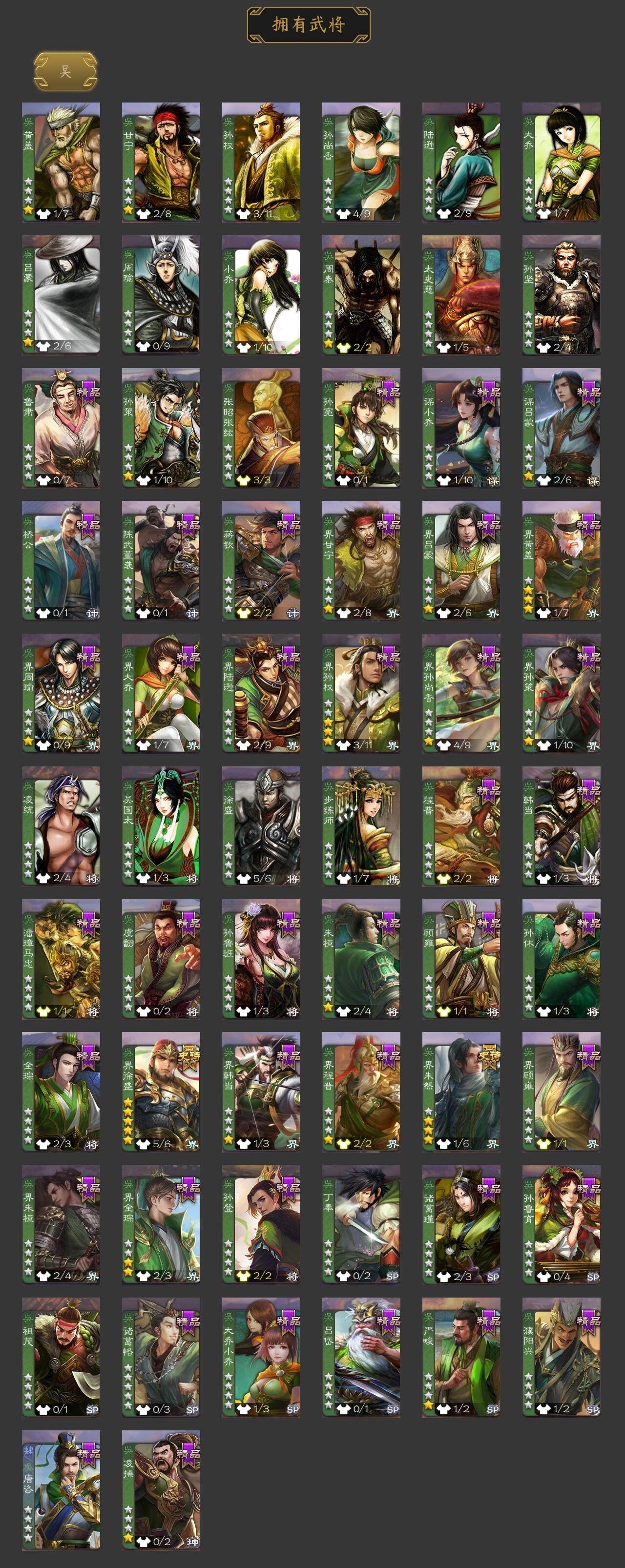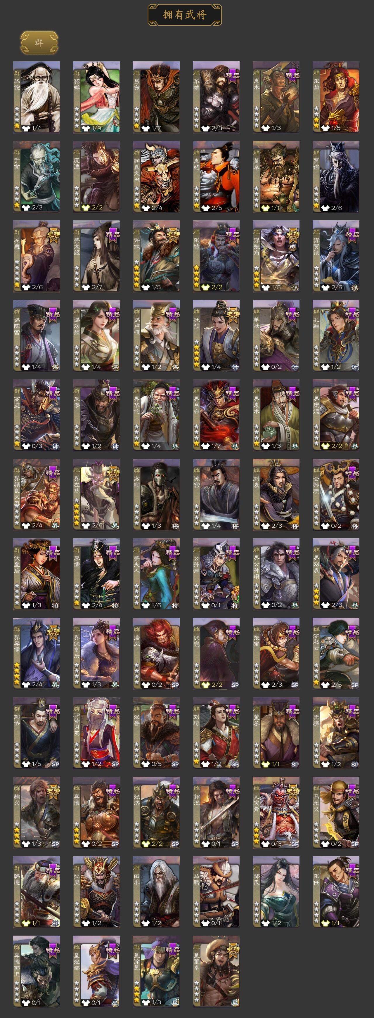 神赵云,神陆逊,神孙策,神周瑜,神诸葛亮,星周不疑,界钟会,陈琳,曹纯,戏志才,刘晔,谋赵云,谋马超,诸葛瞻,沙摩柯,界黄忠,花鬘,界朱然,界徐盛,左慈,麹义,界左慈,界李儒,杜预,谋张角