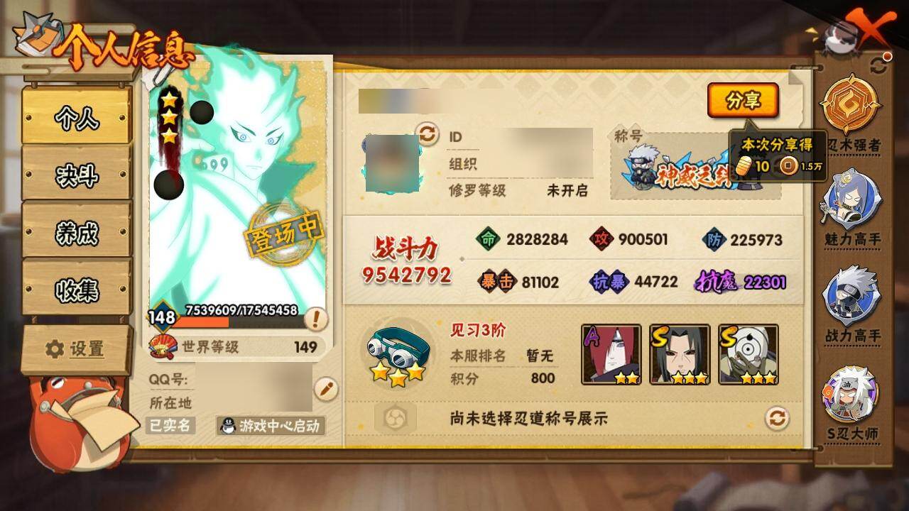 V10/战力954W/S忍20/A忍363星宇智波佐助「永恒万花筒」,3星宇