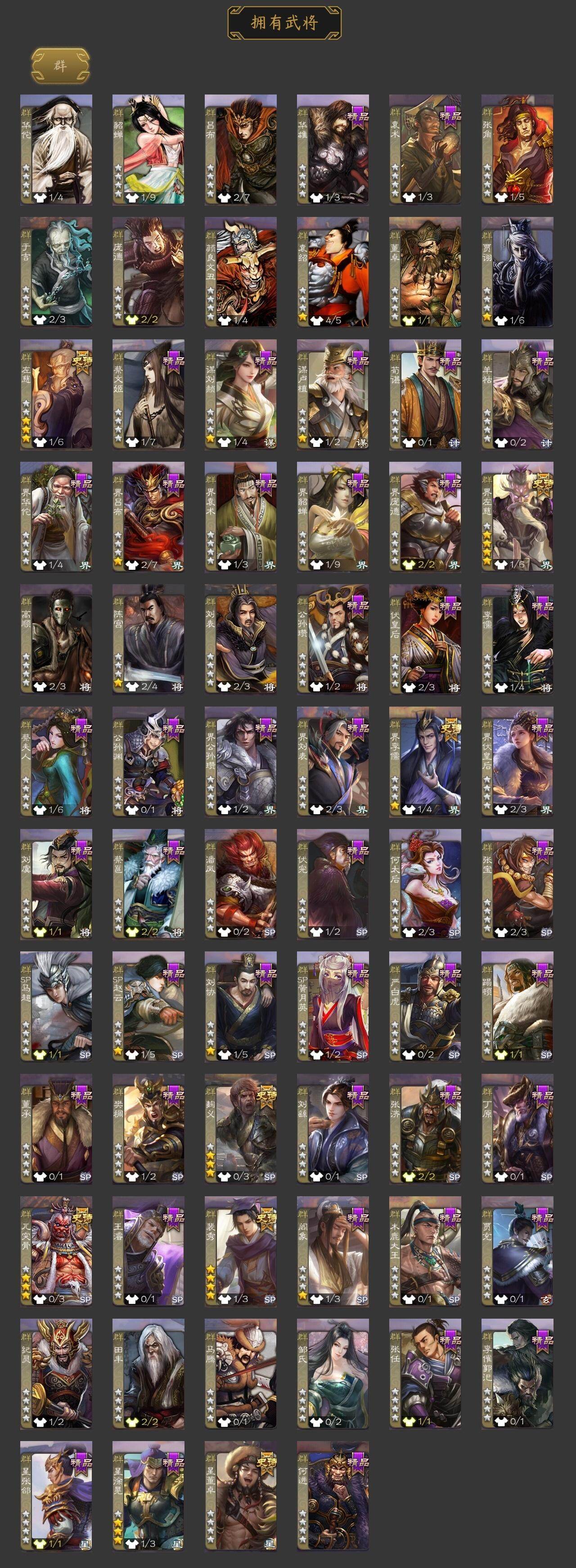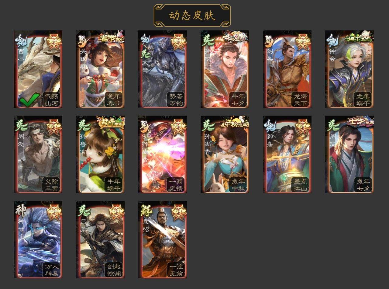 神甘宁,张昌蒲,文鸯,界钟会,曹纯,谋赵云,谯周,董允,骆统,界徐盛,裴秀,左慈,麹义,界左慈,界李儒,阎象,星董卓,神张辽-散敌擒孙,神甘宁-万人辟易(动态),钟会-龙年端午(动态)