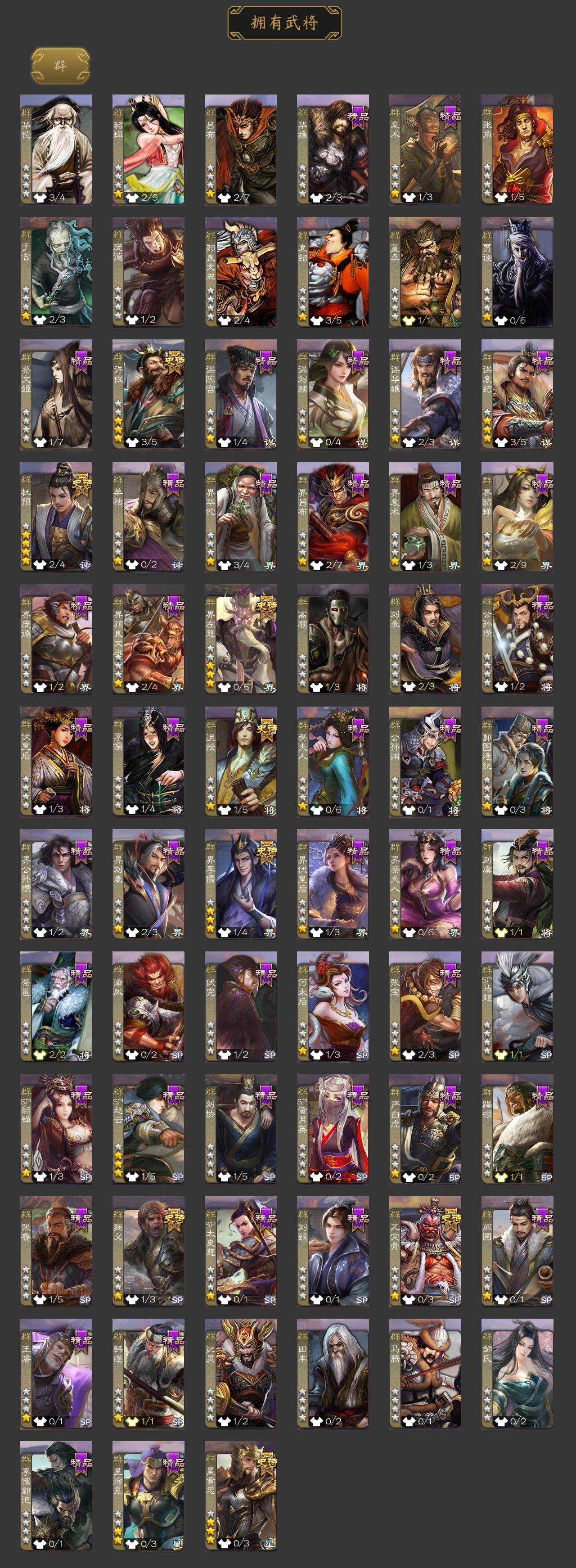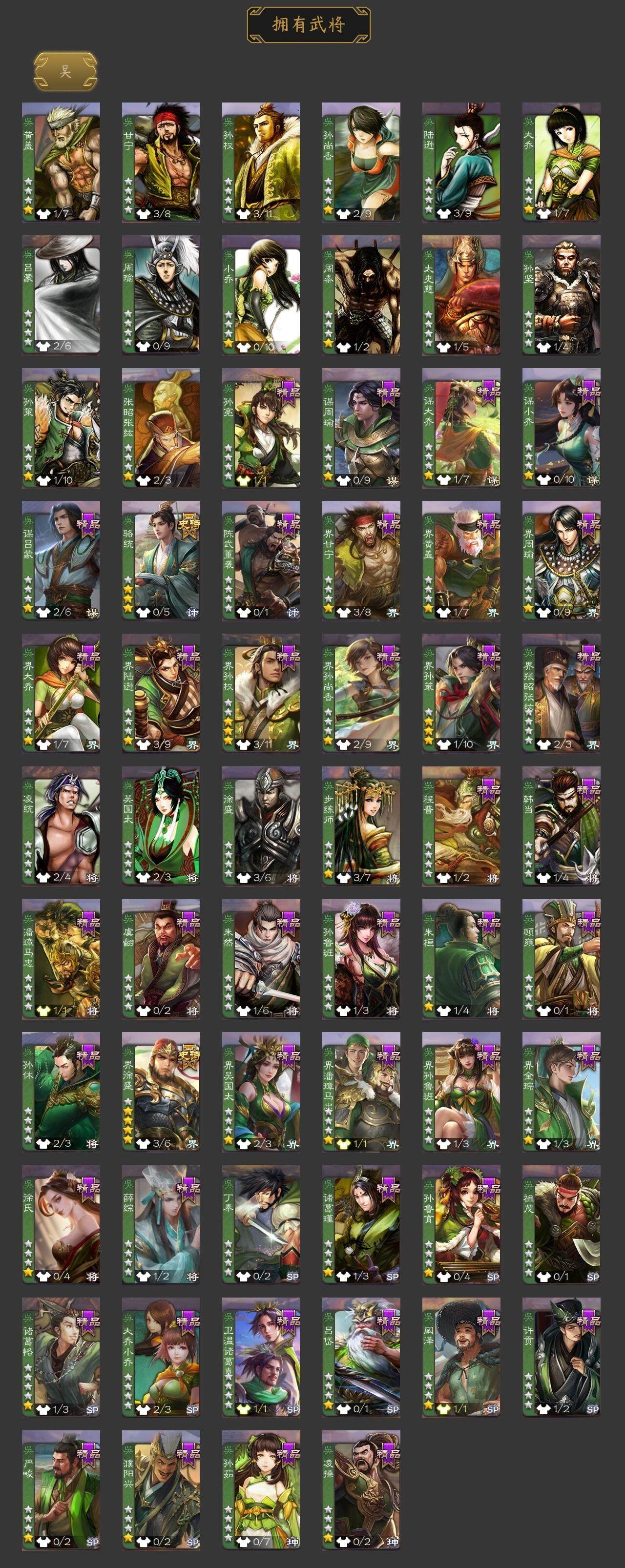 神吕蒙,神周瑜,神诸葛亮,星周不疑,界钟会,界于禁,曹纯,戏志才,谋赵云,谋马超,诸葛瞻,沙摩柯,谯周,界黄忠,董允,骆统,界徐盛,星黄忠,麹义,沮授,界左慈,界李儒,杜预,许攸,张昌蒲