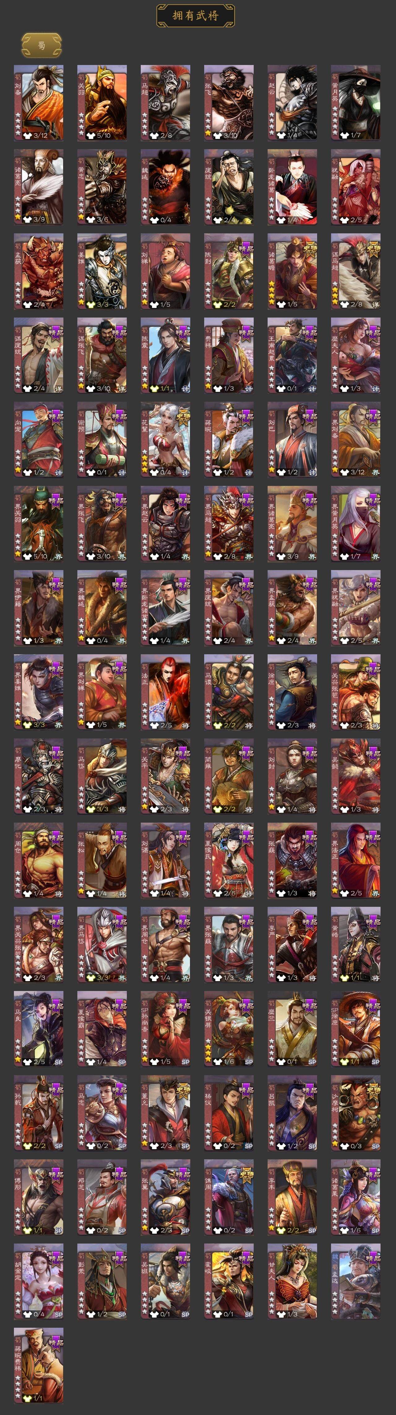 神赵云,神陆逊,神甘宁,神张辽,神吕蒙,神周瑜,星周不疑,杨修,界钟会,界于禁,界曹真,嵇康,郝昭,曹纯,谋马超,诸葛瞻,沙摩柯,谯周,花鬘,董允,骆统,留赞,界朱然,界徐盛,界步