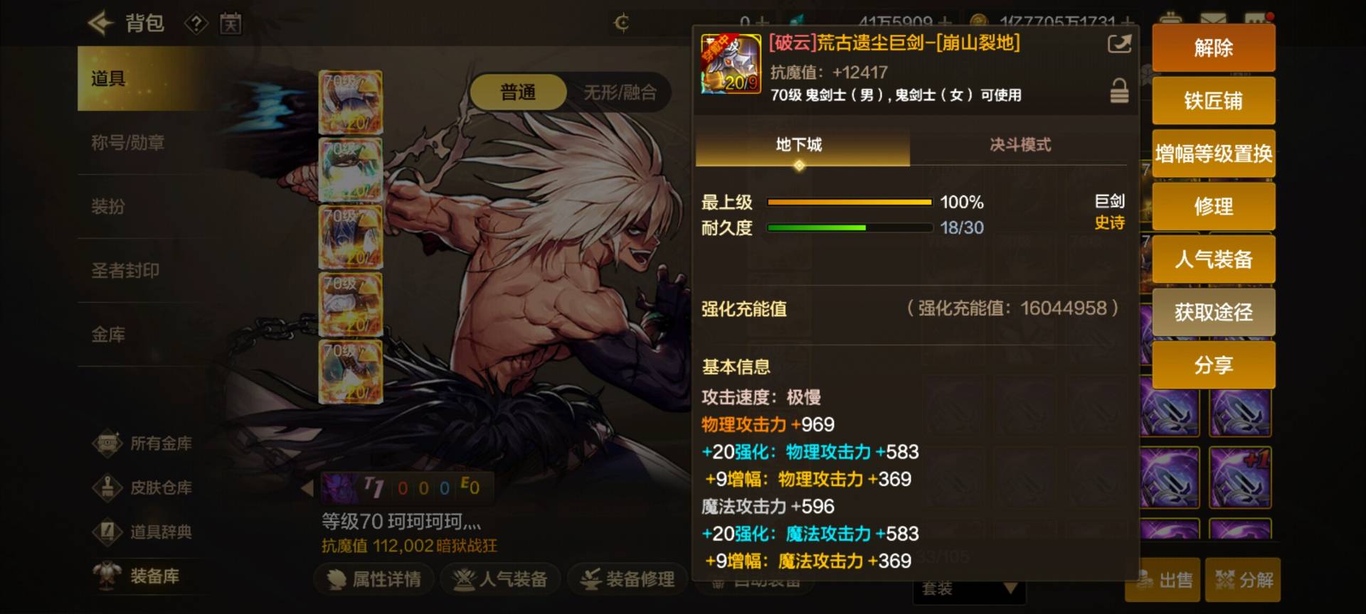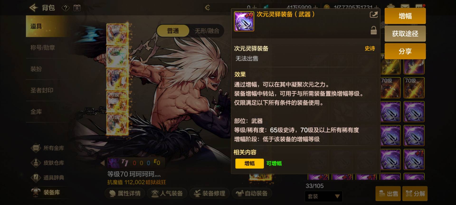 11万2抗魔,60万泰拉,增幅9和+9的增幅胚子,没时间玩便宜卖
