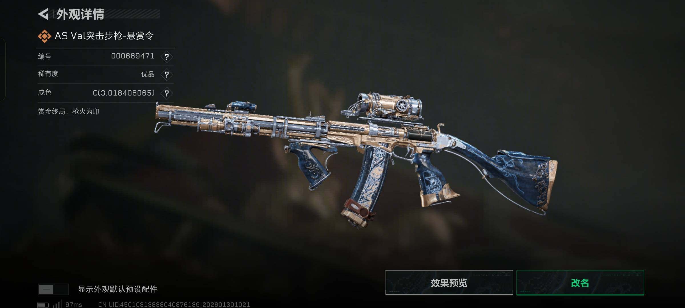 aa49,电锯惊魂无题密令金牌射手皮肤,典藏悬赏令优品C,总资产221.3M,