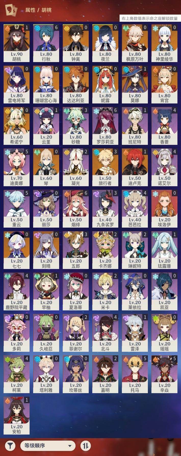 56级/24黄/男主/16个五星角色/5个五星武器0命妮露,0命夜兰,0命雷