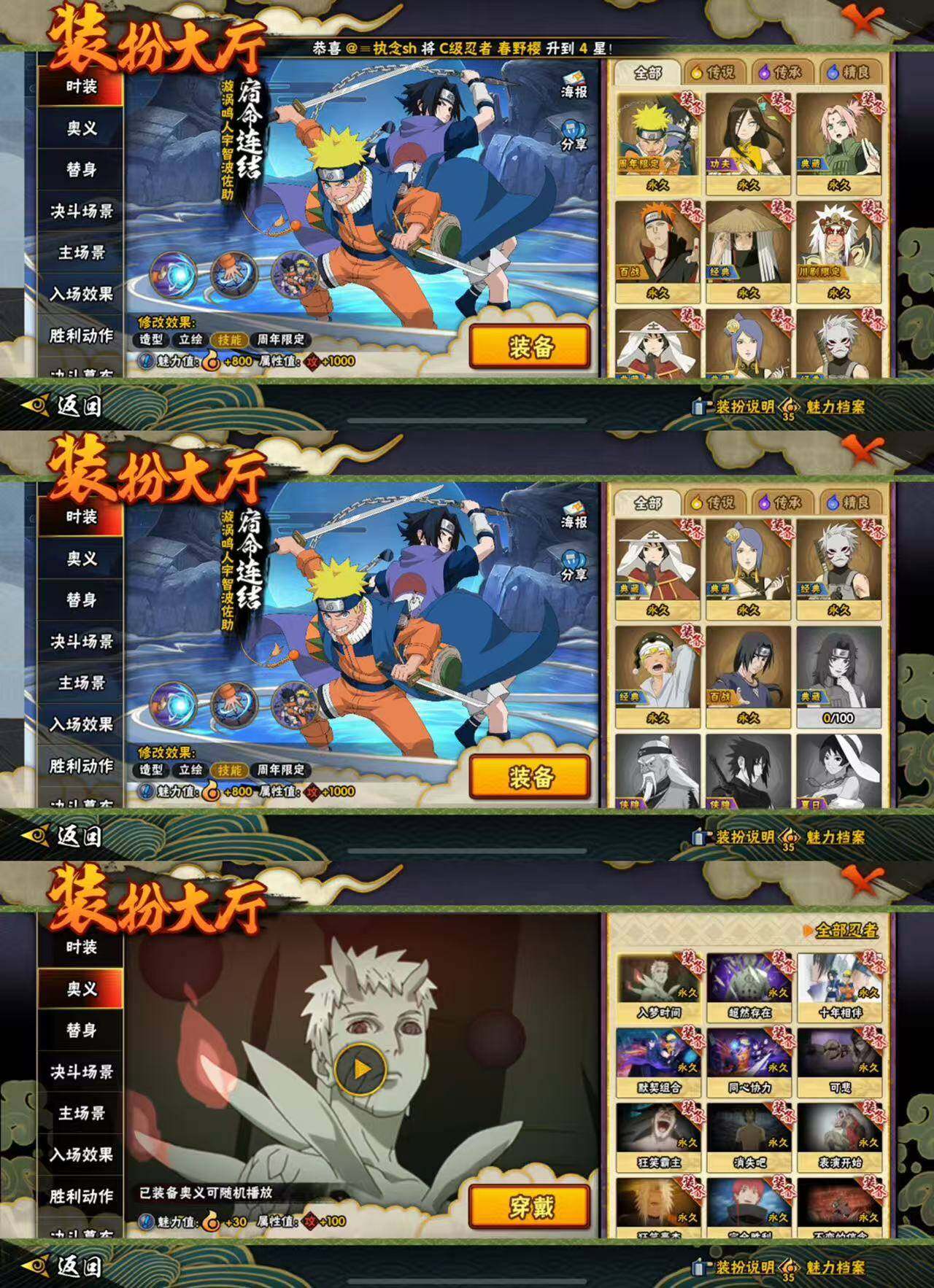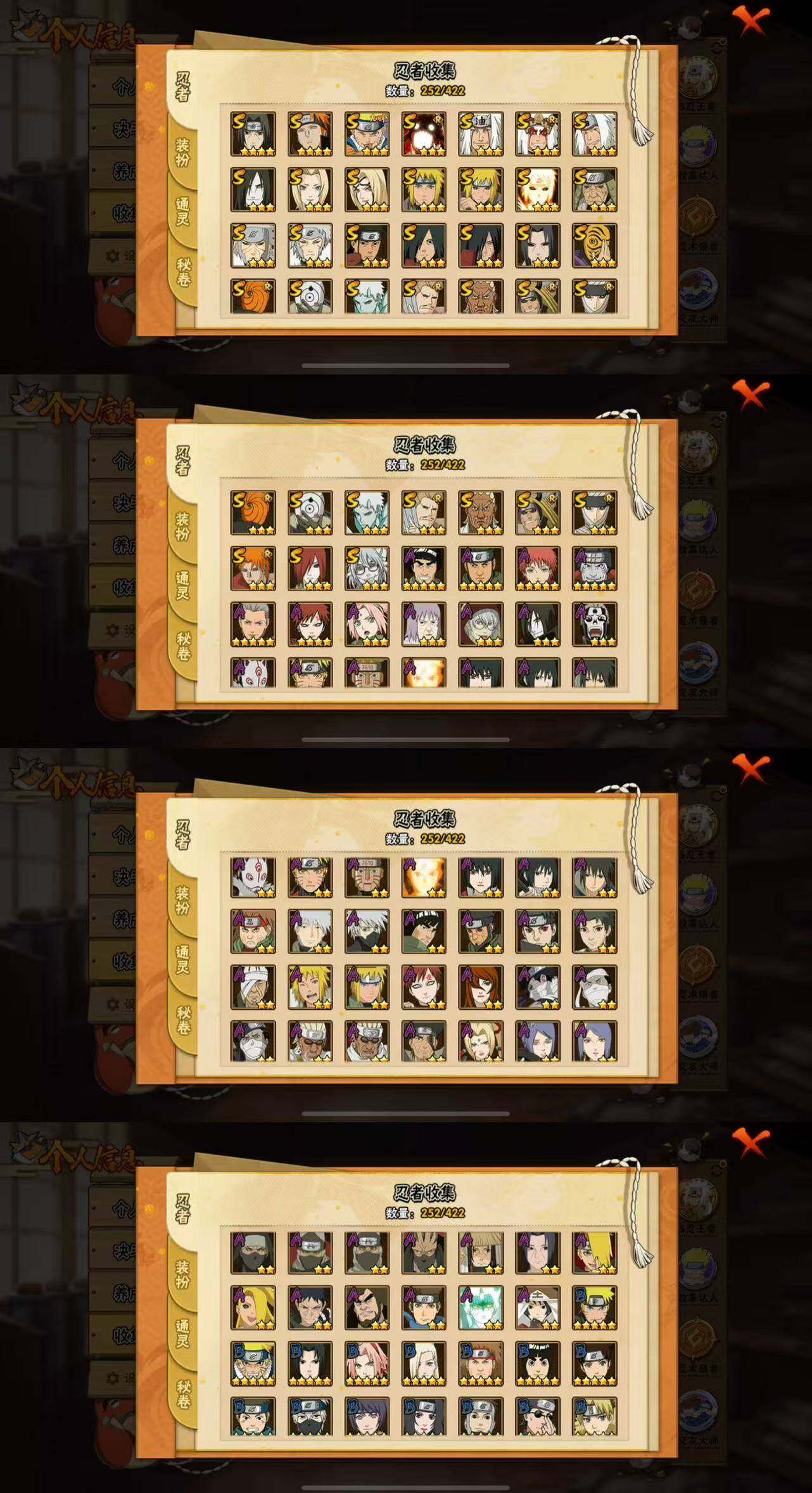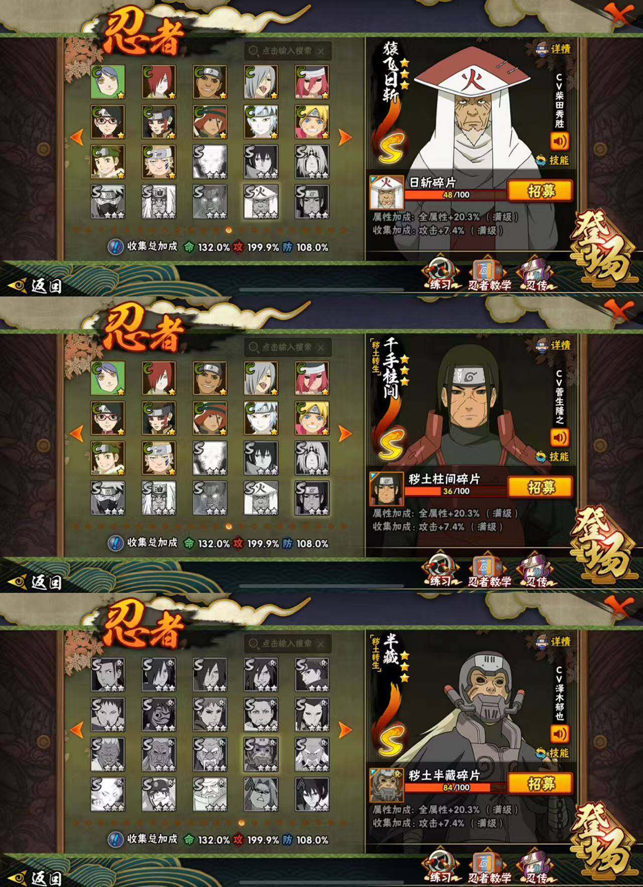 aa51,1198万战,31s忍52a忍,熊猫漂泊带土第六尾鸣人九喇嘛水门秽土日斩黄面具白面具五影斑十尾带土金角银角无鬼灯幻月仙人兜面麻新春止水新春水门新春小南秽土再不斩仙人巳月等,佩恩「天道」(4星),漩涡鸣人·宇智波佐助(3星),漩涡鸣人「暴怒·第六尾」(3星),自来也「传说中的三忍」(3星),猿飞日斩「秽土转生」(3星),波风水门「秽土转生」(3星),波风水门(3星),纲手(3星),纲手「