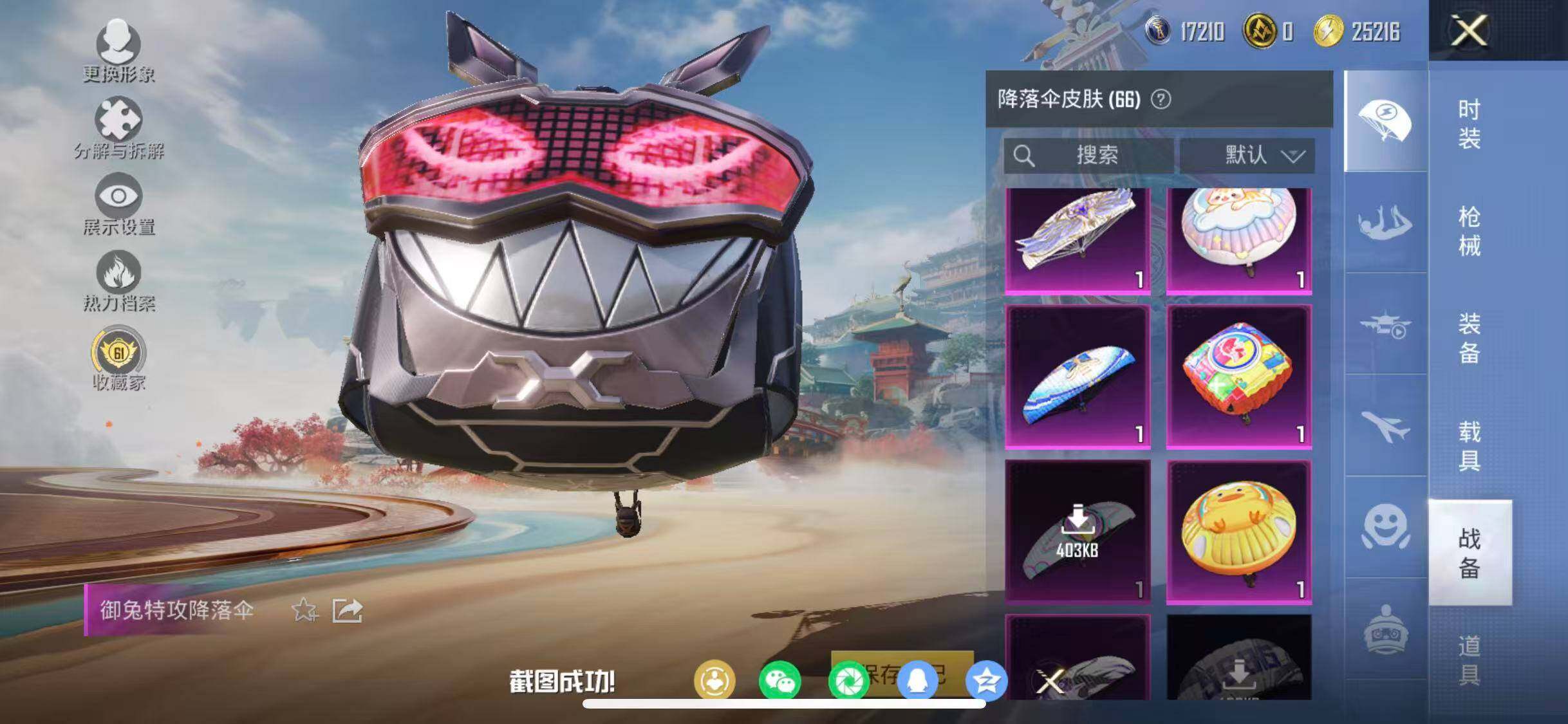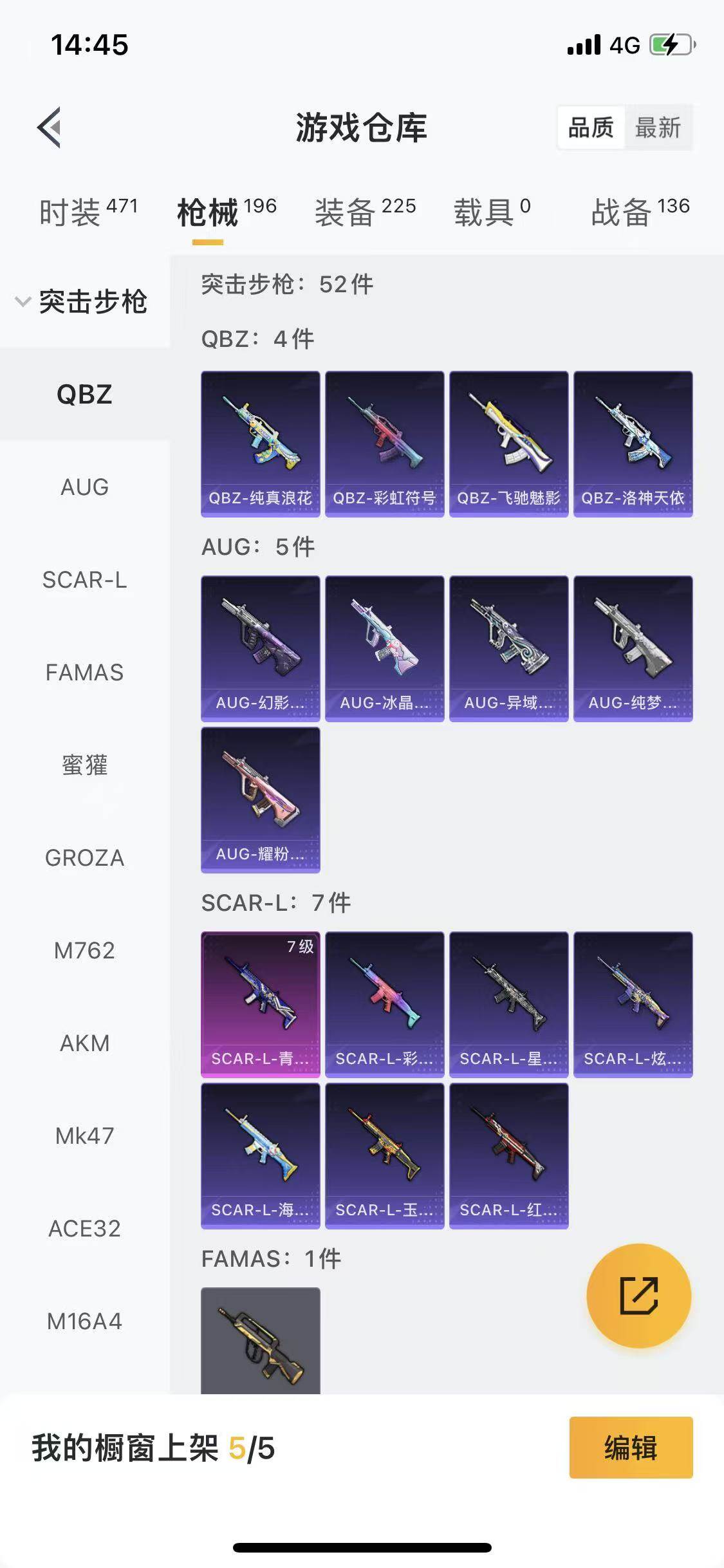 苹果 手Q-4粉装-7特效枪-0载具-2粉色飞行器-59441热力值-14王牌印记-125套装-196枪皮