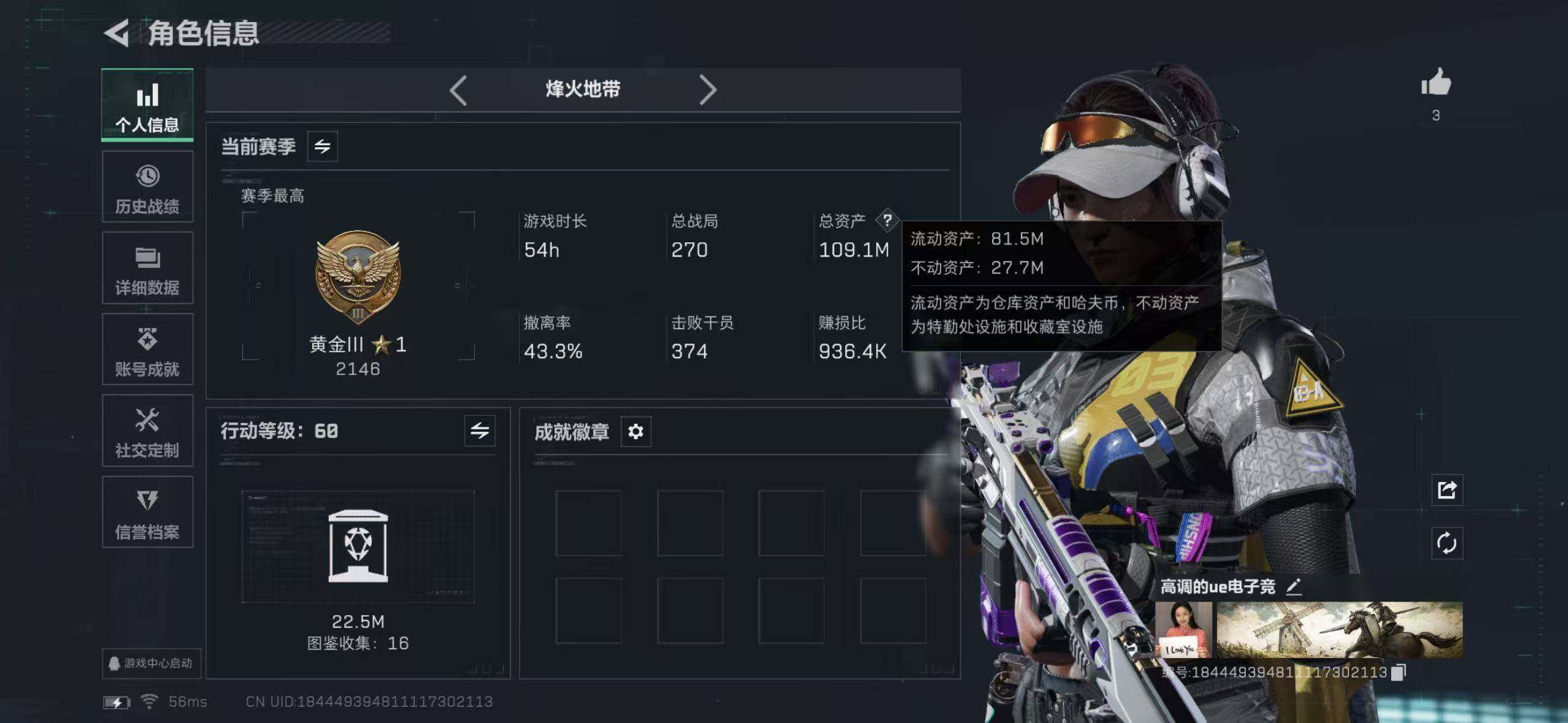 108m总资产-2486k哈伏币-60烽火等级-黄金-33战场等级-上等兵