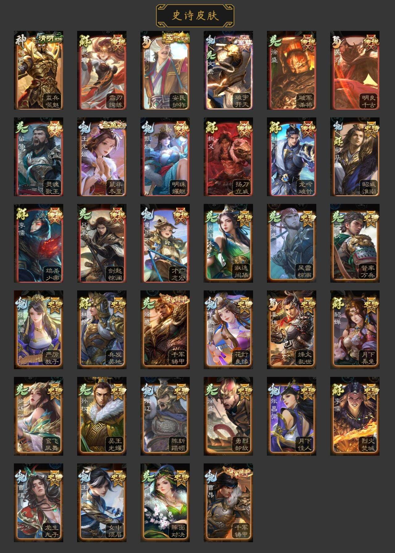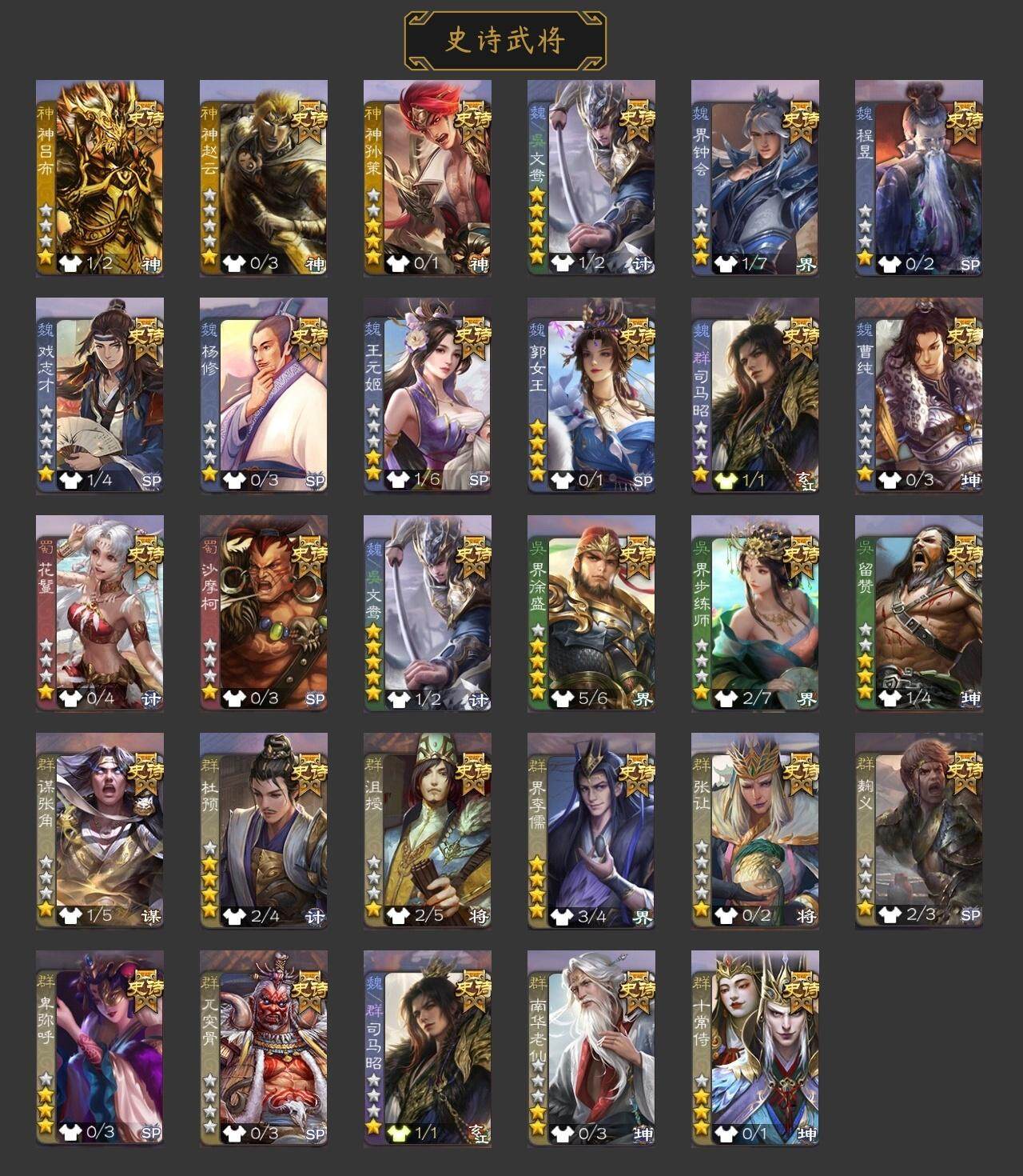 "双形态文鸯/十常侍/司马昭/郭女王/动杜预/神孙策/动界徐盛/动留赞/南海老仙/王元姬/动界李儒/动麹义/戏志才/界钟会/神赵云/神吕布等27史诗