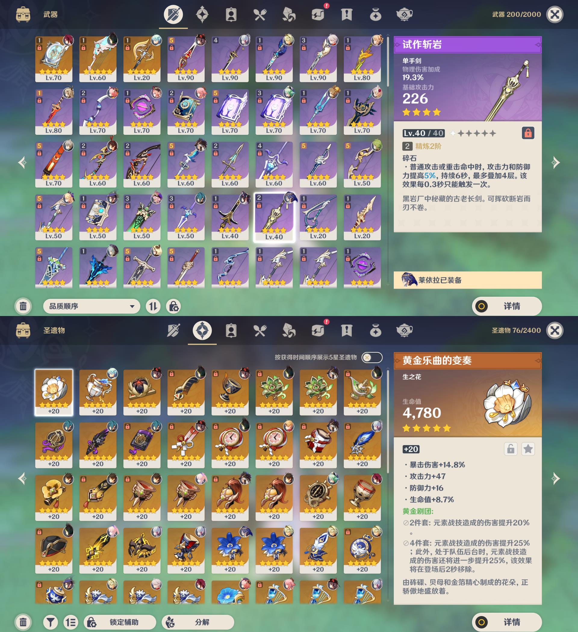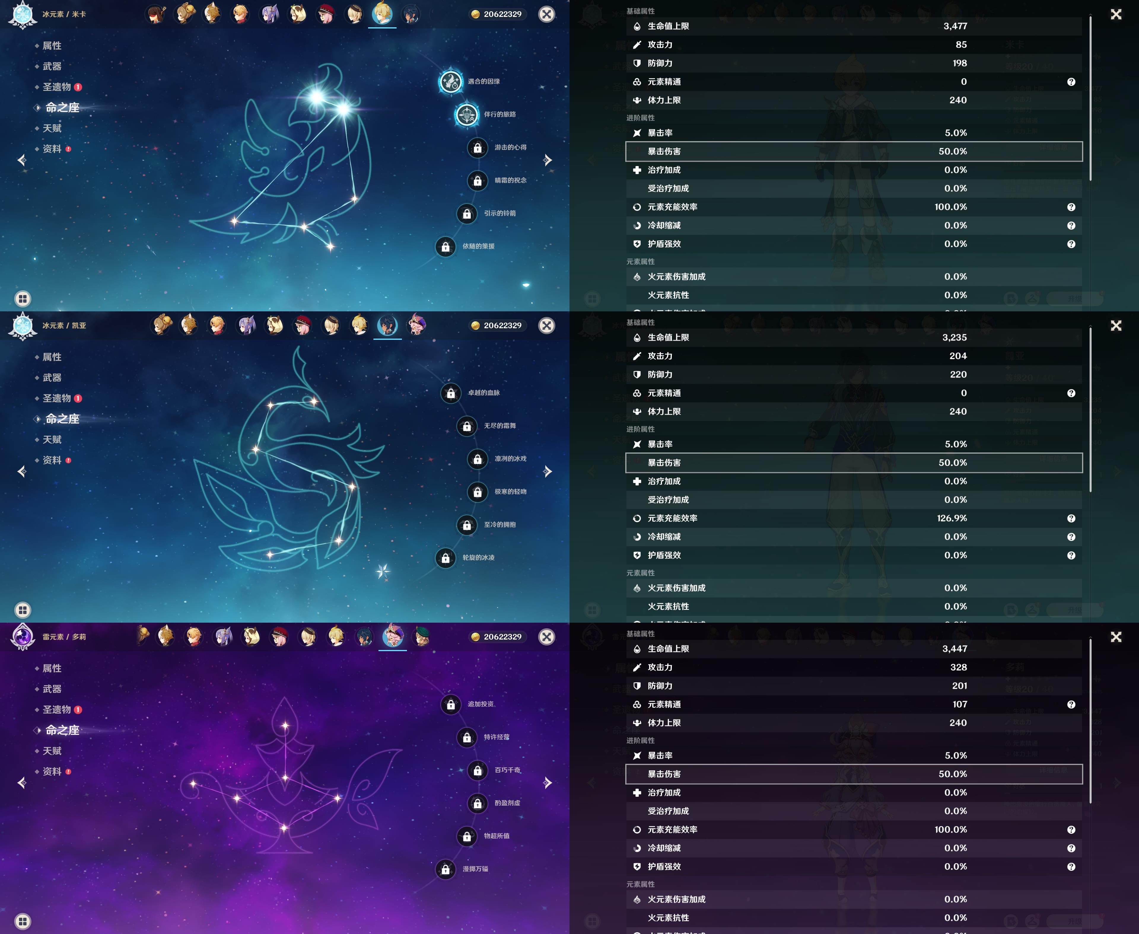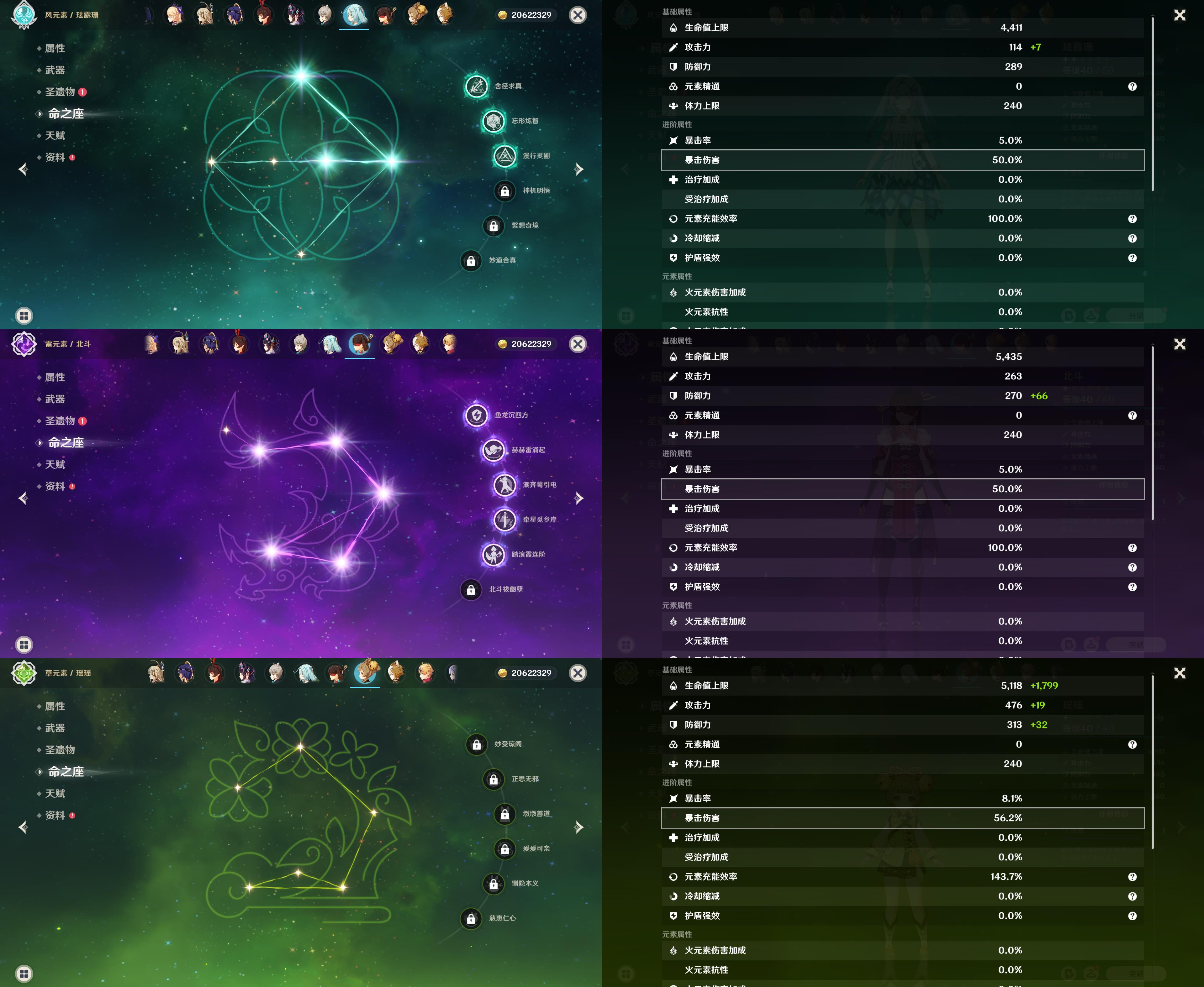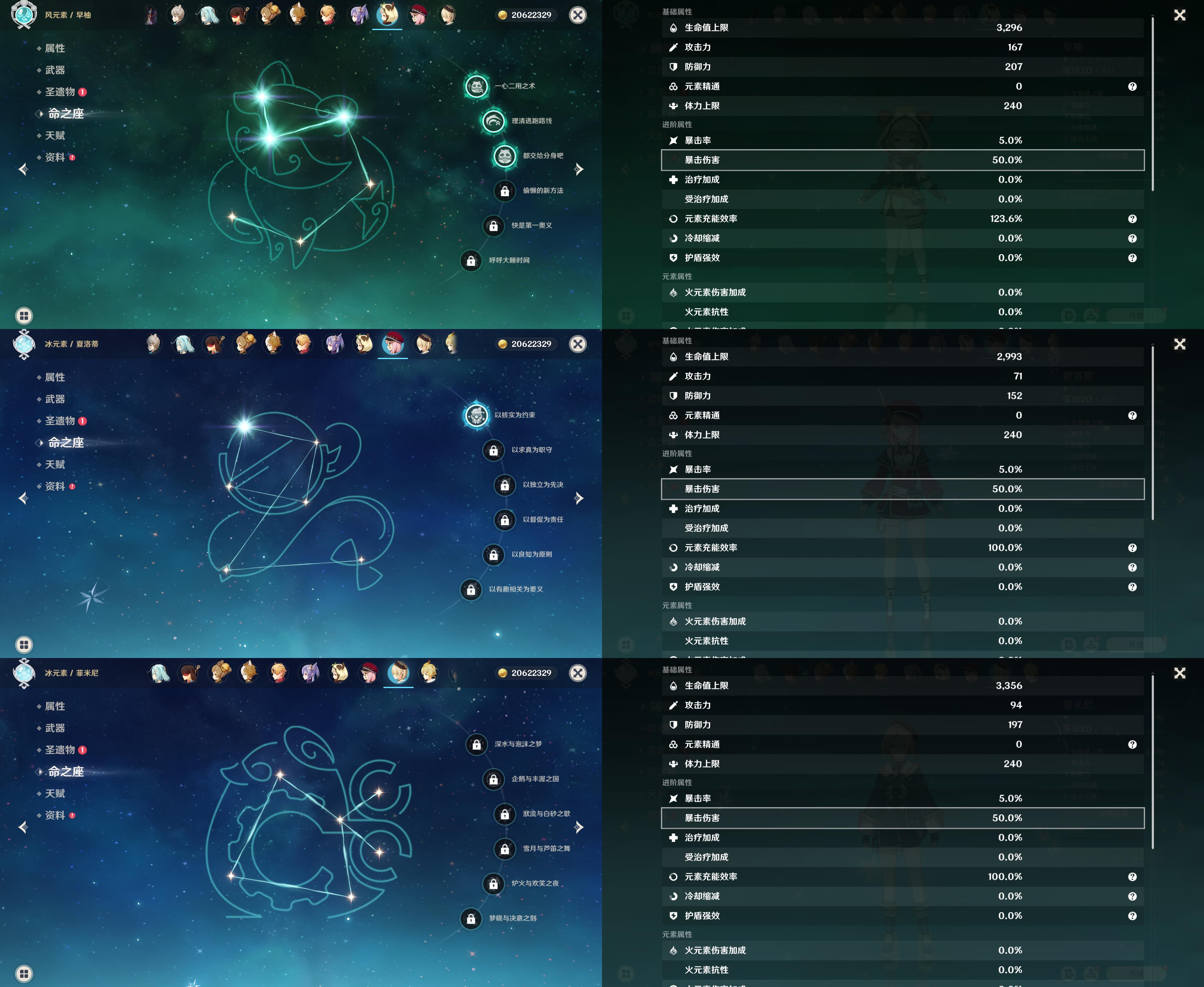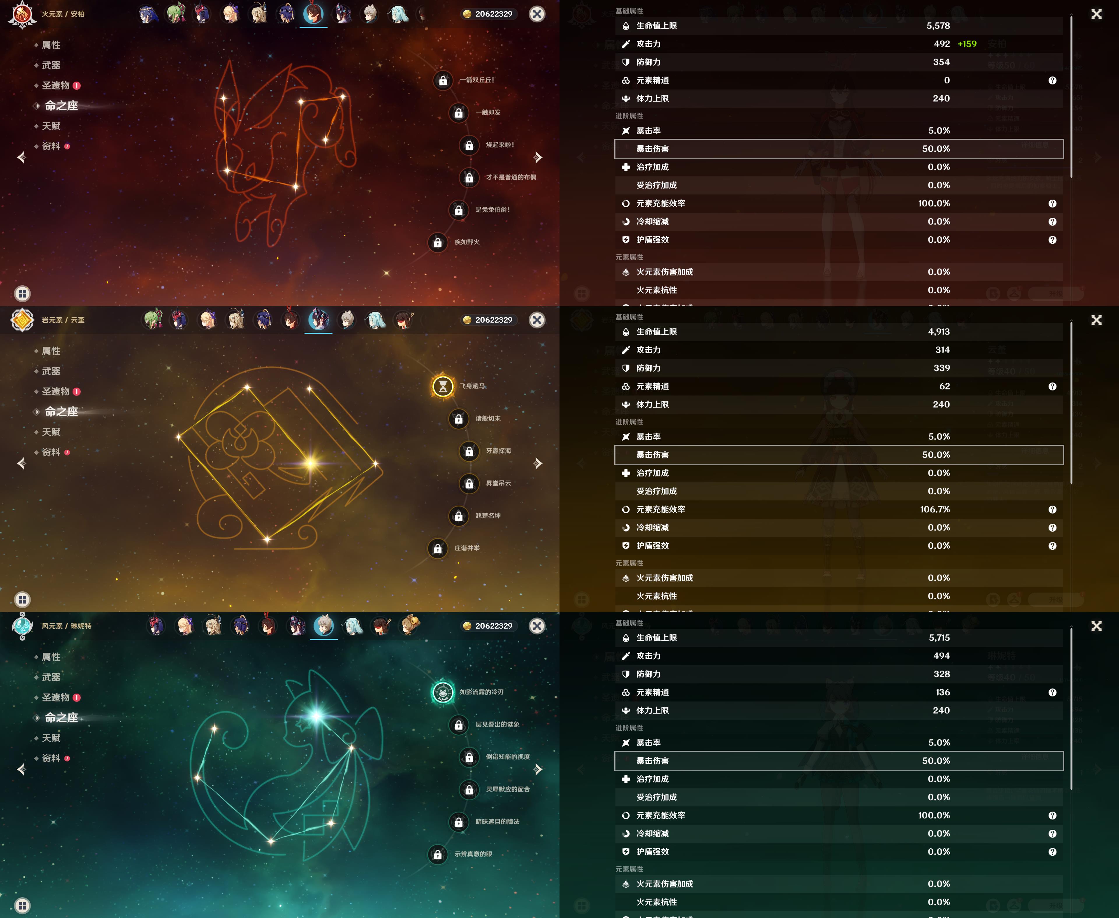 57级/18黄/女主/11个五星角色/3个五星武器/珊瑚宫心海/八重神子/2命提纳里/钟离/枫原万叶/神里绫华/胡桃/1命赛诺/1命莫娜/琴/刻晴/四风原典/天空之翼/裁断