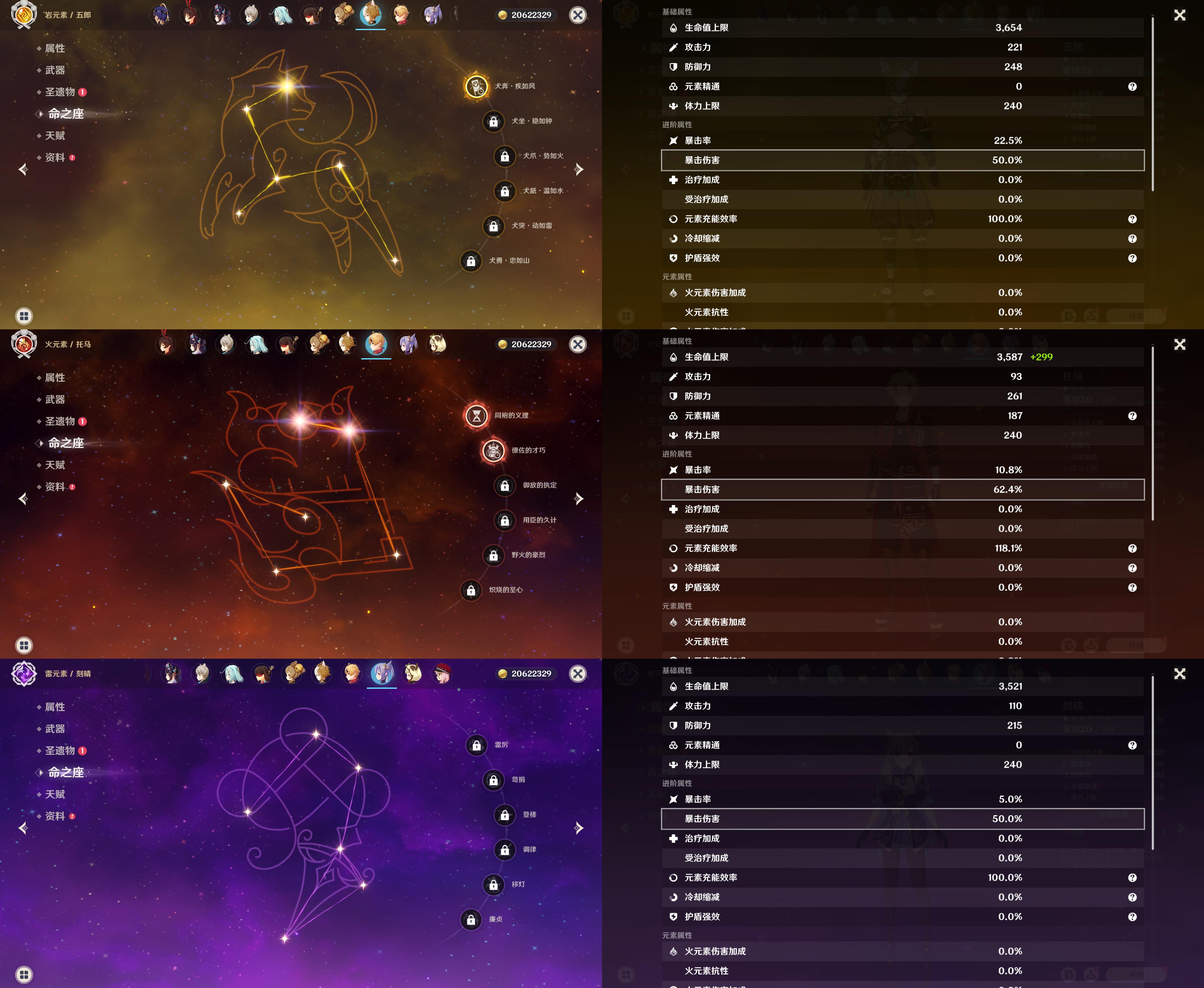 五星角色: