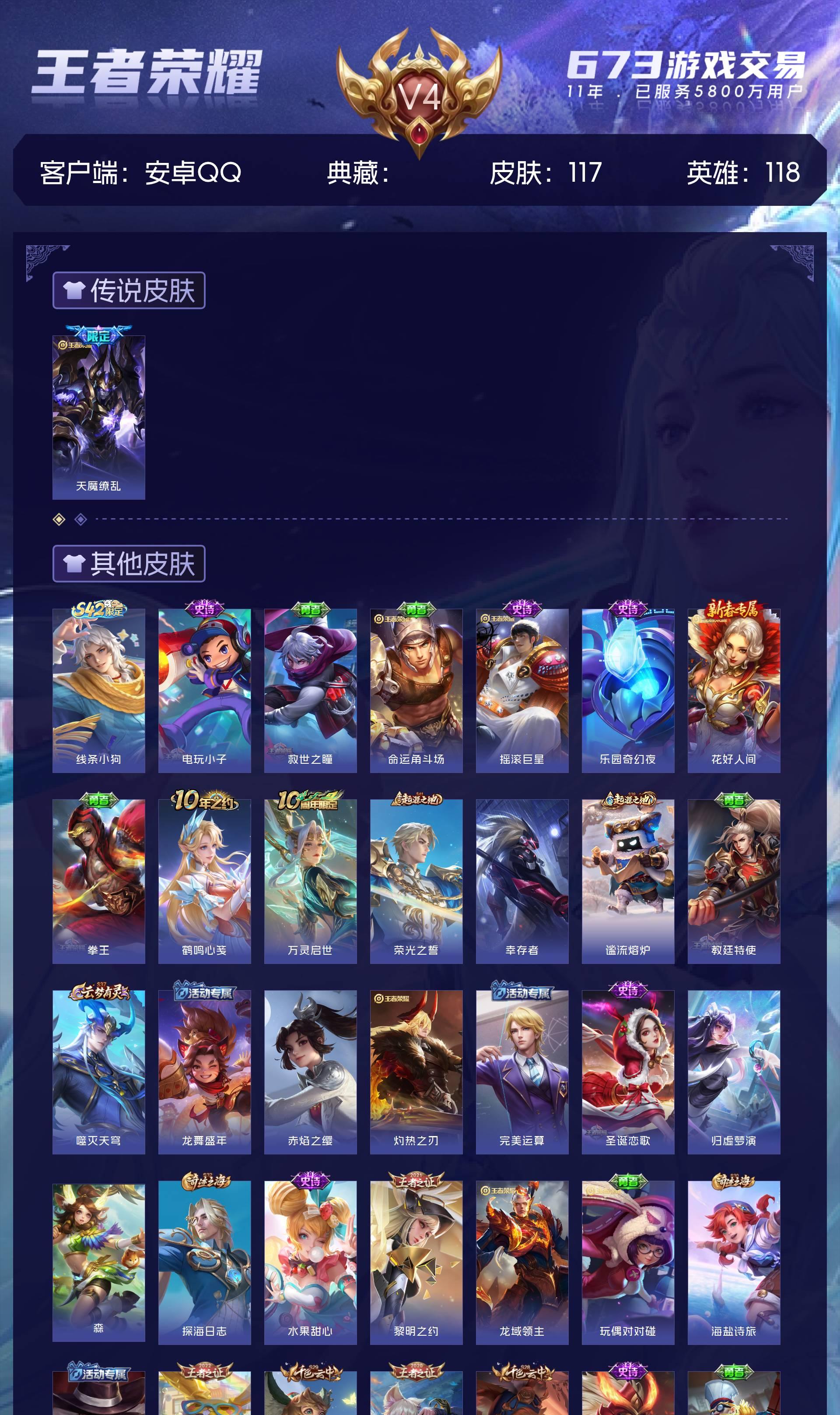 V4 皮肤117 英雄118 永恒钻石 传说1 其他皮肤121