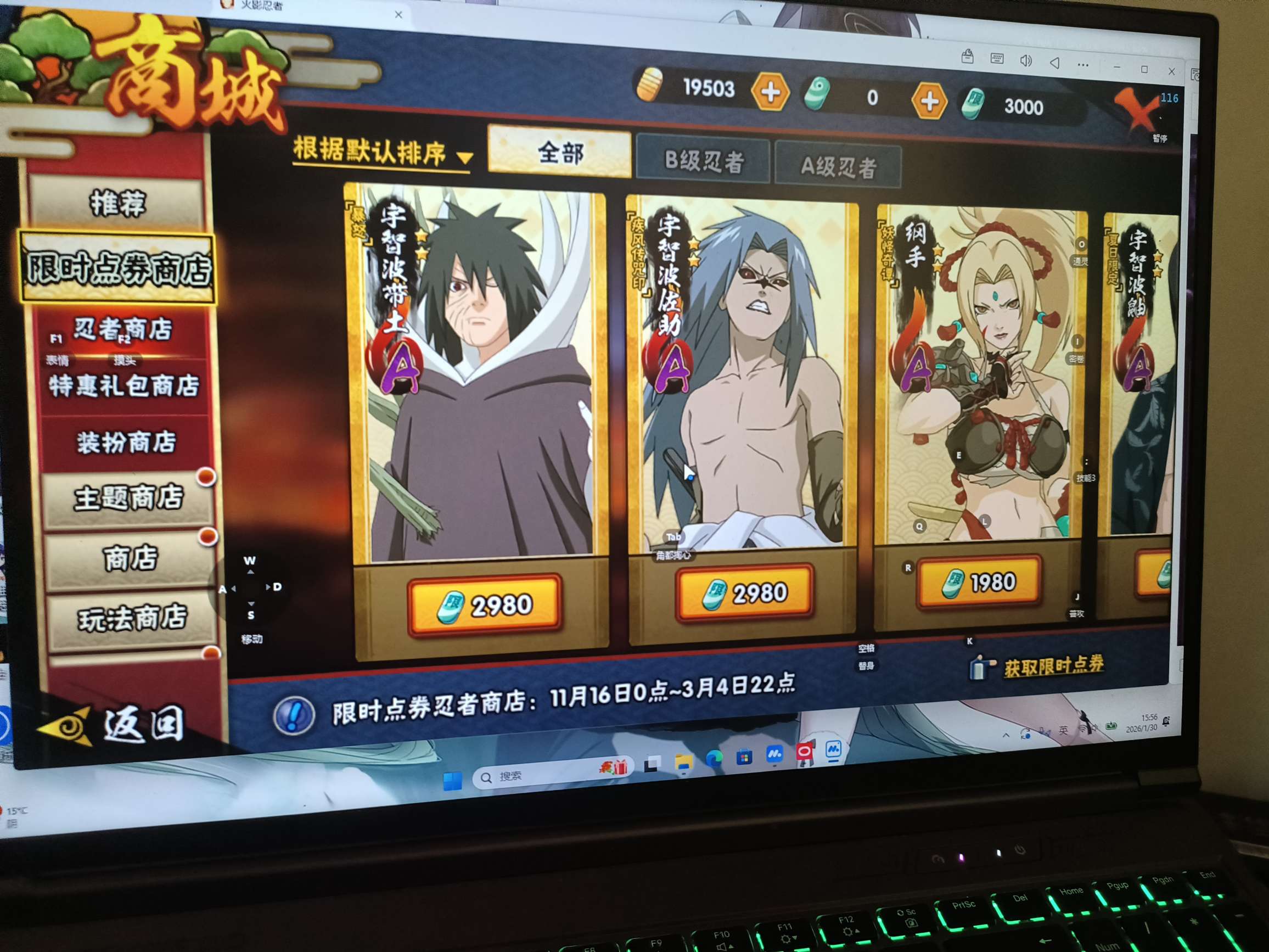 3000限时点券,45片带土,17片巳月,19500金币