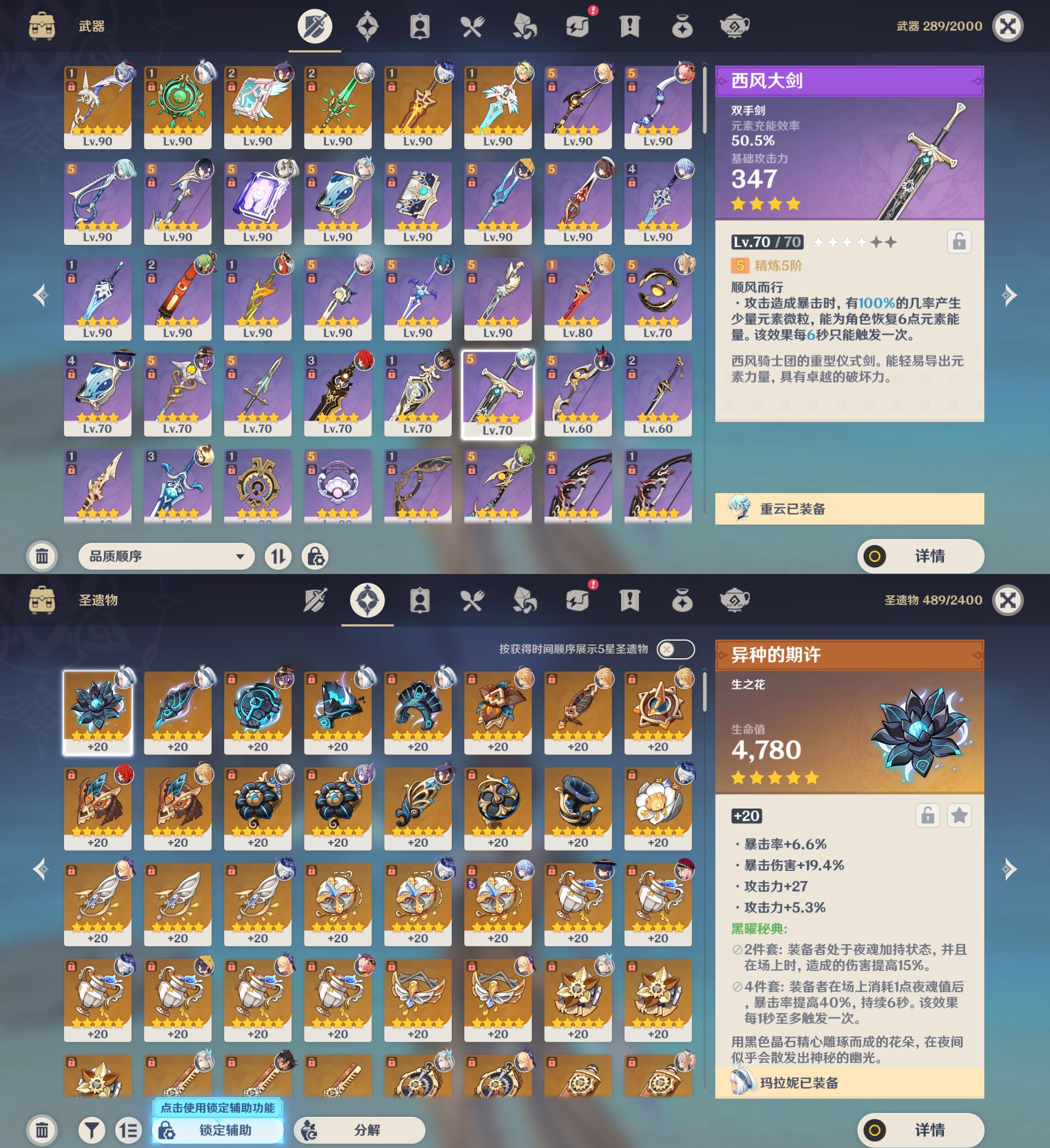 60级/46黄/女主/21个五星角色/6个五星武器