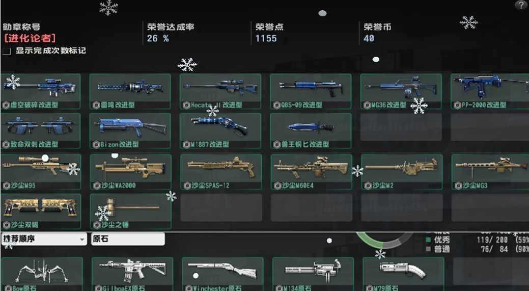 不是裸四件套!图1狂暴英雄武器,图2生化Z,赛季和灾变武器,图3怀旧武器!另外还有些完美强化武器,可