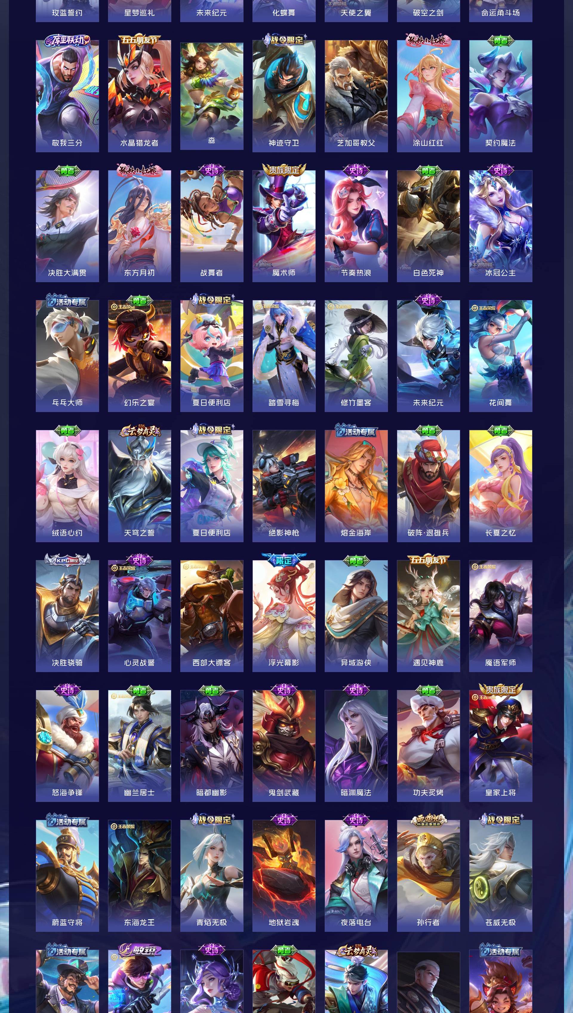 V7 皮肤206 英雄125 最强王者 荣耀典藏1 珍品无双1 无双皮肤3 珍品传说2 传说18 其他皮肤188