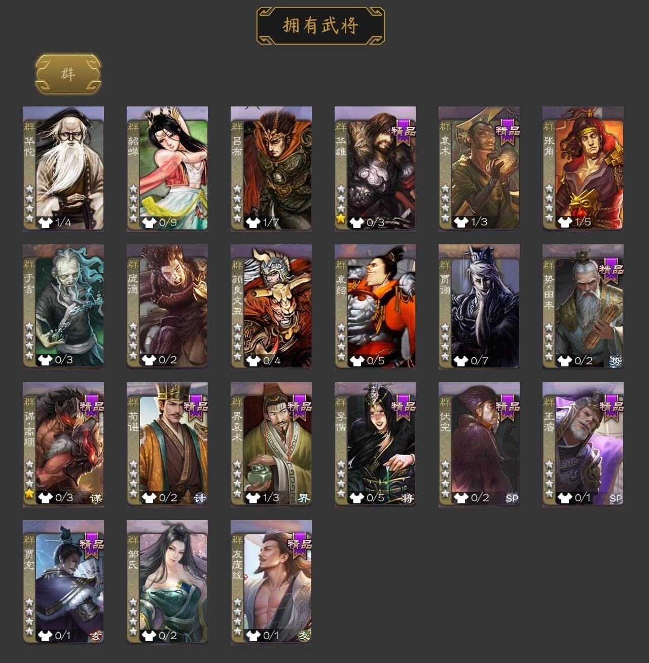 神刘备,神孙策,SP关羽,韩浩史涣,董昭,势陈到,关银屏,马良,界马岱,刘封,界刘备,界赵云,界马超,SP徐庶,周仓,界简雍,许靖,孙鲁育,界周瑜,界陆逊,孙鲁班,界韩当,孙邵,张温,张布,