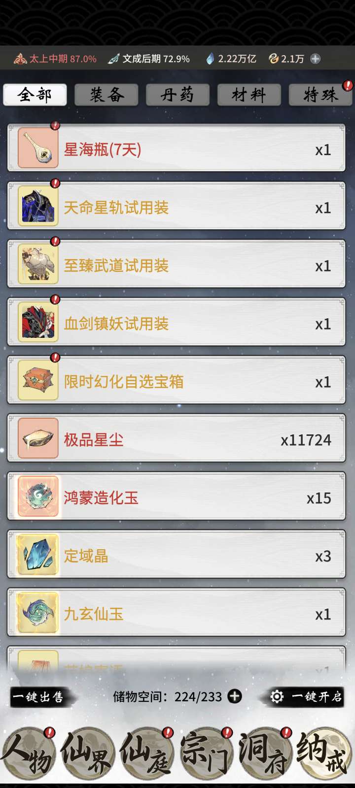 愿有道友承载修仙之路,已投保放心购买境界上升空间大,可玩性高,不至于无聊,喜欢的可以直接拍,可聊