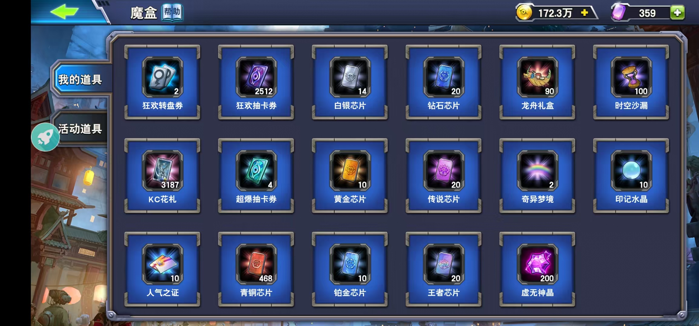 编号10,金币172万,超值劵56张(30张必出一张指定卡),狂欢劵2512,超爆劵4,指示物1,竞技黑暗都市邀请函都有好多,几百决斗笔记,几百虚无宝石,无绑手机无实名,三无账