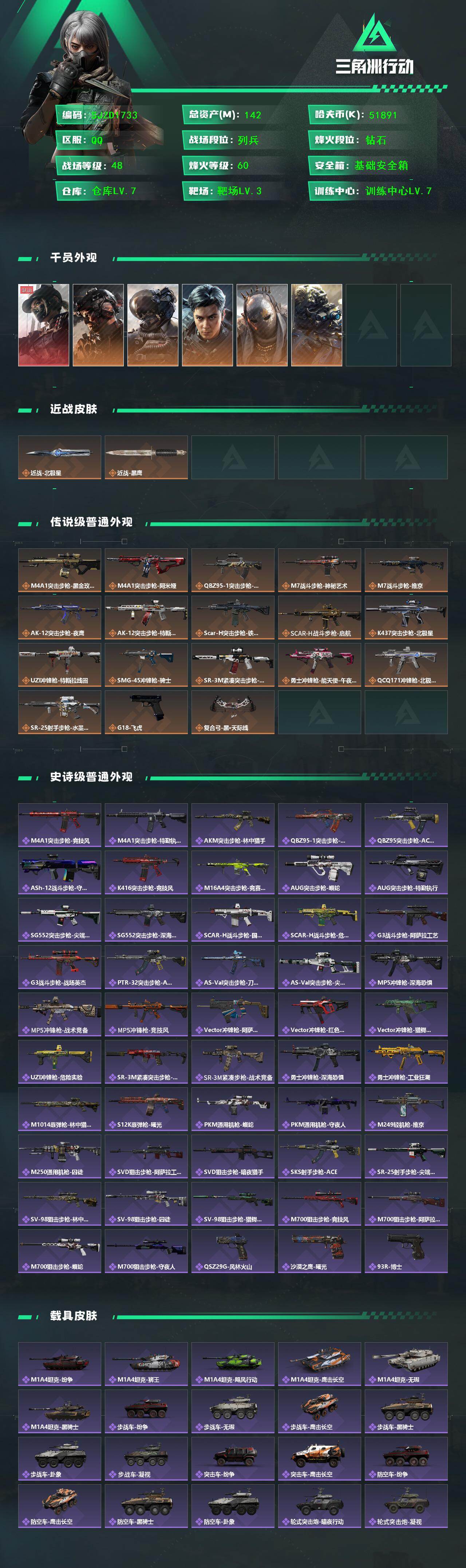 【SJZD1733】总资产(M):142M/哈夫币(K):51891K/哈夫币(K):51891K/传说枪皮数:18/全面战场等级:48_段位:列兵/烽火地带等级:60_段位:钻石/露娜-黑·天际线/威龙-铁面判官/威龙-壮志凌云/威龙-飞虎/牧羊人-街头之王/无名-夜鹰/近战-北极星/近战-黑鹰/M4A1突击步枪-蚀金玫瑰/M4A1突击步枪-阿米娅/QBZ95-1突击步枪-破军/M7战斗步枪-神秘艺术/M7战斗步枪-维京/AK-12突击步枪-夜鹰/AK-12突击步枪-特斯拉线圈/SCAR-H战