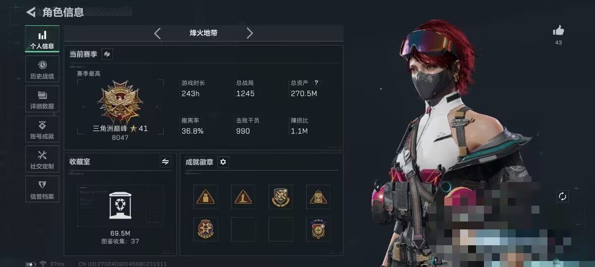 【SJZD1623】总资产(M):270M/哈夫币(K):17814K/哈夫币(K):17814K/传说枪皮数:22/全面战场等级:50_段位:尉官/烽火地带等级:60_段位:三角洲巅峰/蛊-能天使午夜邮差/蜂医-送葬人·无题密令/深蓝-不破誓约/红狼-电锯惊魂/露娜-金牌射手/近战-怜悯/近战-电锯惊魂/近战-信条/近战-黑鹰/M4A1突击步枪-阿米娅/ASh-12战斗步枪-鹅鸭杀/SG552突击步枪-运动员/AK-12突击步枪-特斯拉线圈/SCAR-H战斗步枪-启航/G3战斗步枪-骑士/CA