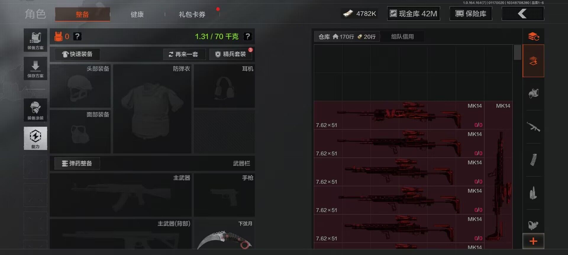 仓库价值(百万):65/柯恩币:4782/下弦月/急袭弯刀/收割者/空腔战术/使徒欧瑞恩