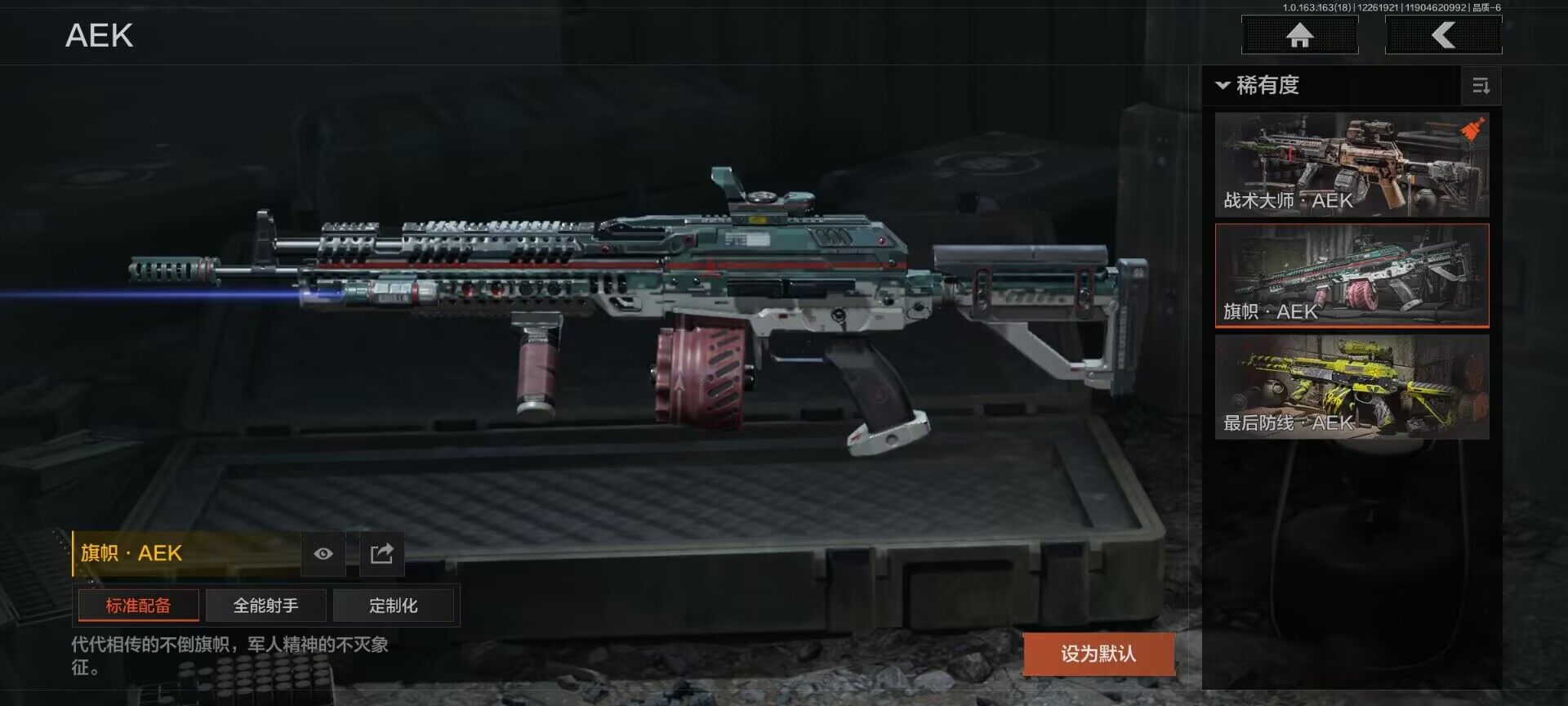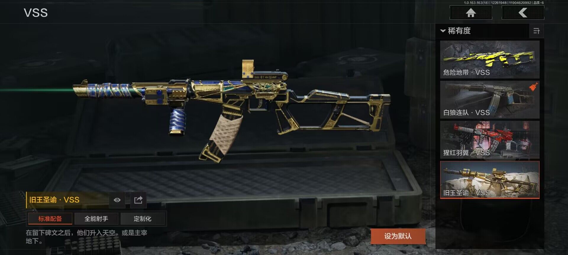 【AQD91】等级:30/段位:暗区传说/仓库价值(百万):15.6/柯恩币:126832/赢家匕首/苍穹利爪/收割者/使徒欧瑞恩/告丧夜曲AUG/告丧夜曲AR57/旗帜AEK/战术大师AEK/旧王圣谕QBZ191/利齿风暴MPX/旧王圣谕VSS/冥王