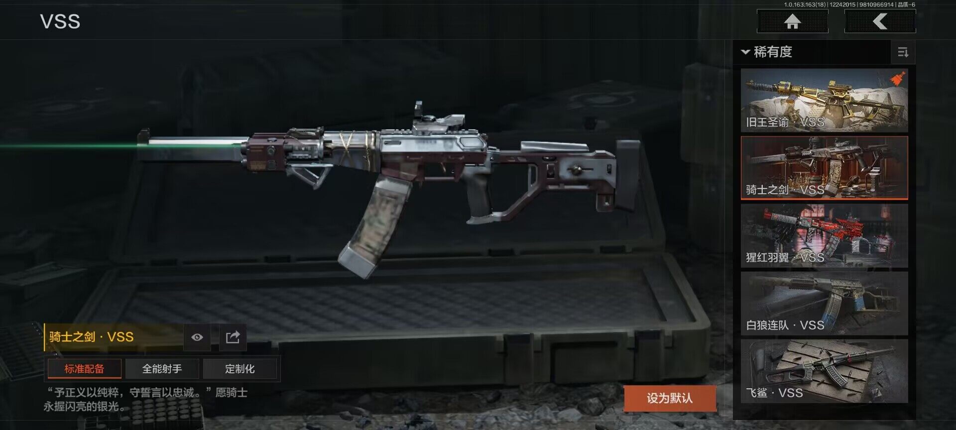 【AQD85】等级:30/段位:专家/仓库价值(百万):3.9/柯恩币:3211/急袭弯刀/工兵铲/突击匕首/来战开山刀/告丧夜曲AUG/旗帜AEK/竞技FAL/利齿风暴MPX/棱光裂变QBU191/旧王圣谕VSS/骑士之剑VSS