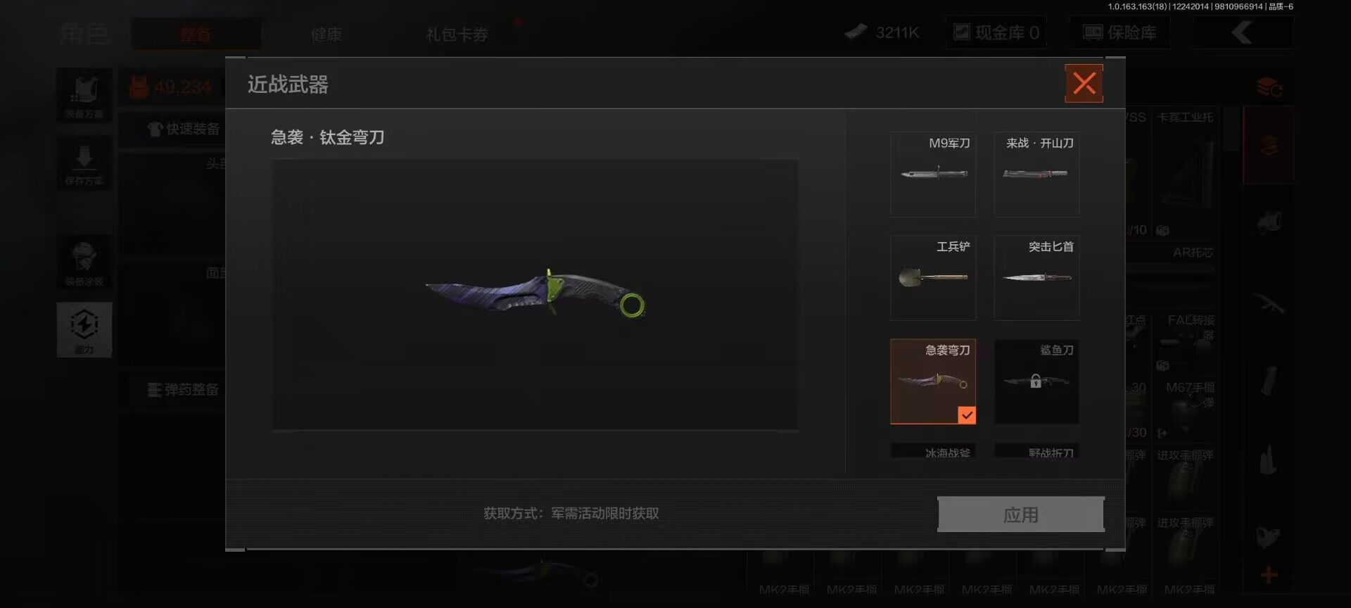 等级:30/段位:专家/仓库价值(百万):3.9/柯恩币:3211/急袭弯刀