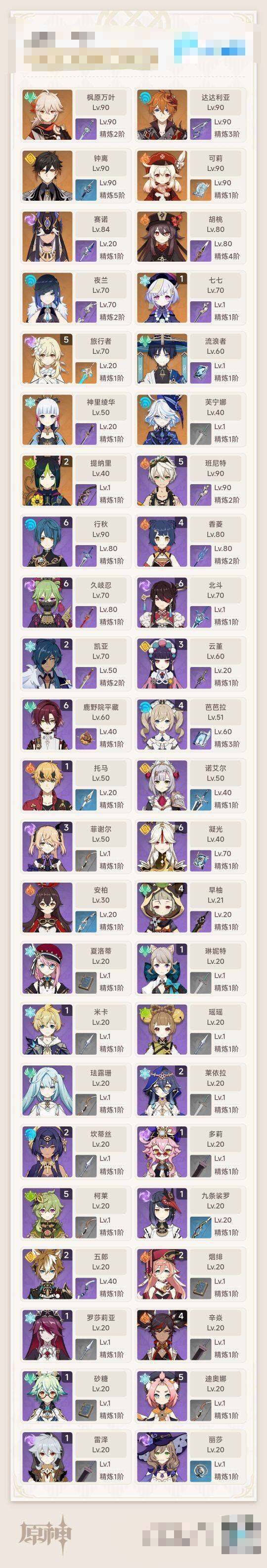 【YSD43】56级/15黄/女主/13个五星角色/2个五星武器/芙宁娜/流浪者/赛诺/2命提纳里/夜兰/神里绫华/枫原万叶/胡桃/钟离/达达利亚/可莉/1命七七/四风原典/天空之刃/夏洛蒂/1命琳妮特/1命米卡/瑶瑶/珐露珊/2命莱依拉/2命坎蒂丝/1命多莉/5命柯莱/满命鹿野院平藏/满命久岐忍/3命云堇/2命五郎/1命托马/1命九条裟罗/4命早柚/2命烟绯/1命罗莎莉亚/4命辛焱/5命迪奥娜/1命砂糖/1命雷泽/3命菲谢尔/0命丽莎/满命北斗/4命香菱/安柏/5命班尼特/满命行秋/4命芭芭拉